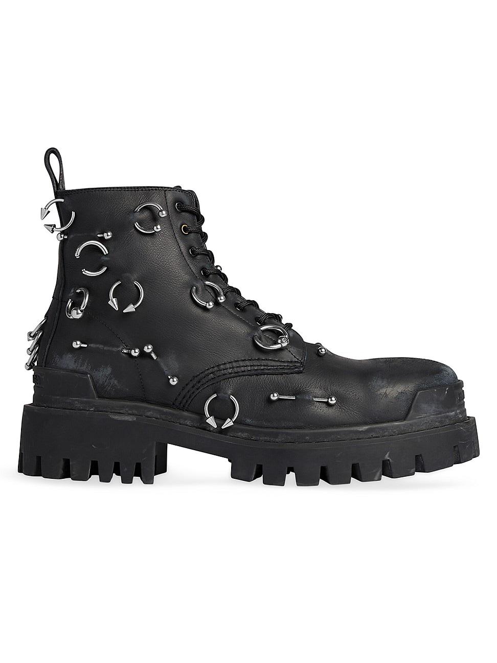 Calfskin with piercings Boots Extra round toe Worn-out effect 20mm arch Mid-calf height Tone-on-tone laces Visible tone-on-tone top-stitching 8 eyelets lace-up vamp Thick toothed rubber outsole with Balenciaga logo in the front and in the back Loop at back Made in Italy Wipe with a soft cloth. Lsd Rtw - Balenciaga Rtw > Balenciaga > Saks Fifth Avenue > Barneys. Balenciaga. Color: Black. Size: 12.