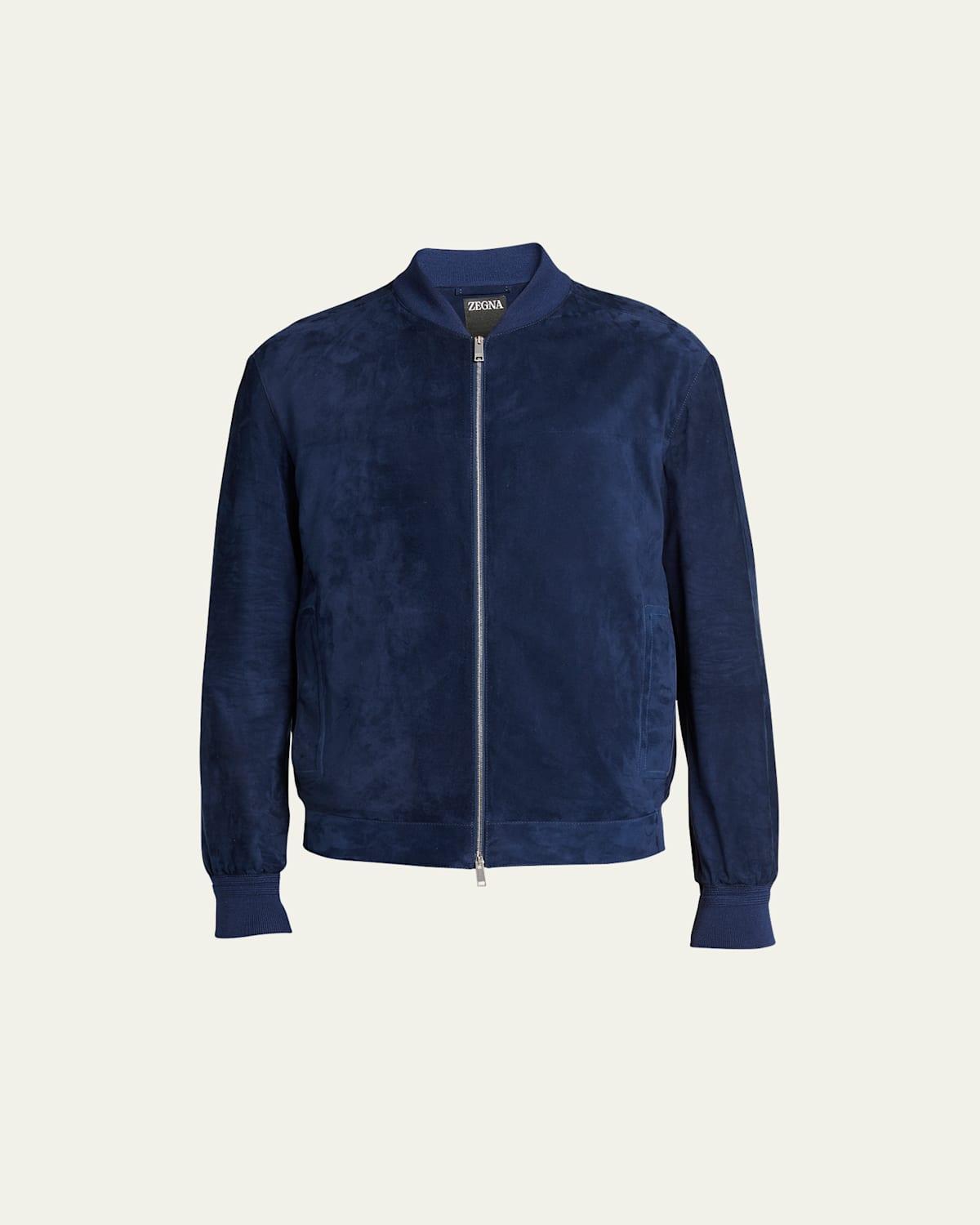 Mens Suede Full-Zip Bomber Jacket