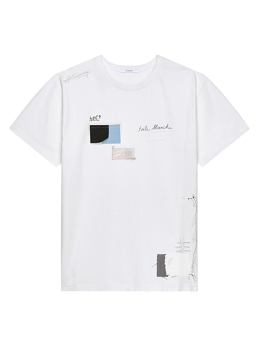 T-shirt in cotton with Trompe lil pattern. Short-sleeved T-shirt in cotton Crew neck Trompe lil print with fabric swatches embroidered on the front Gros grain with Givenchy signature and zigzag details on the chest Composition: 100% cotton Made in Portugal. Lsd Rtw - Givenchy Rtw > Givenchy > Saks Fifth Avenue. Givenchy. Color: Beige Camel. Size: Large.