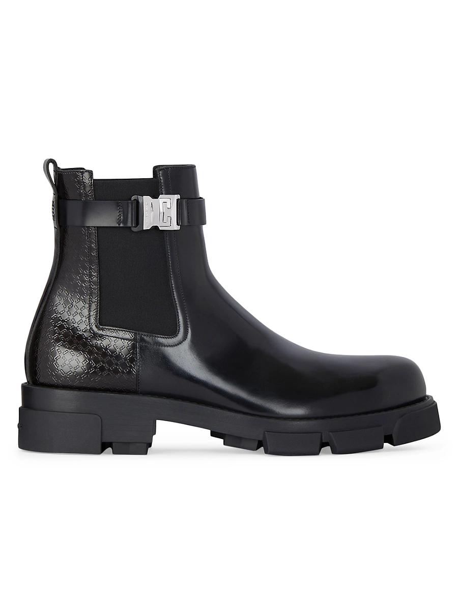 Terra chelsea boots in leather. Chelsea boots in brushed bull leather Terra line Elastic goussets on the sides Strap with Givenchy engraved 2G metal clip buckle Monogram 72 debossed on the back part 4G emblem debossed on the back Givenchy signature embossed on the back of the sole Silvery-finish metal details Chunky technical sole Composition: 100% bull leather Insole: 100% calfskin leather Made in Italy. Lsd Rtw - Givenchy Rtw > Givenchy > Saks Fifth Avenue > Barneys. Givenchy. Color: Black. Size: 13.