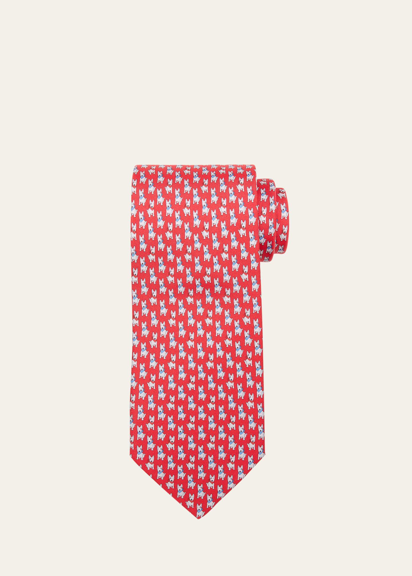 Mens Terrier-Print Silk Tie