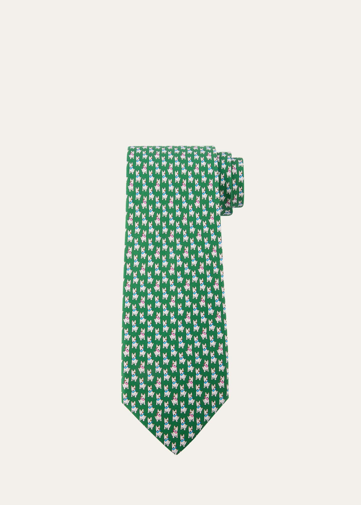 Ferragamo tie in silk featuring a playful Terrier dog print Approx. 59.5L x 3.2W Self-tie style Silk Made in Italy