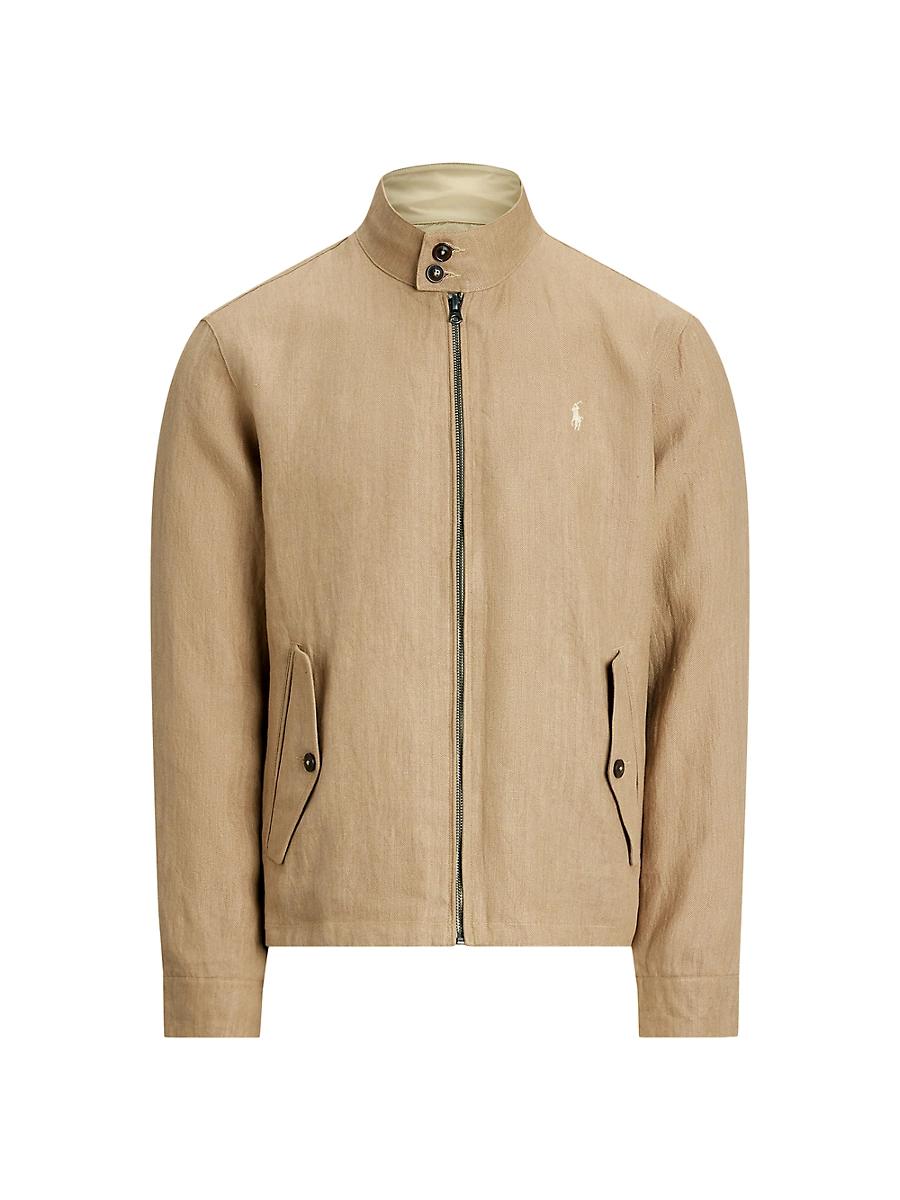 This Bedford jacket from Polo Ralph Lauren is crafted of herringbone linen and reverses to matte taffeta. The left chest of each side is embroidered with the labels signature Pony. Stand collar Long sleeves, button barrel cuffs Side button-through flap-slant pockets Front zip closure 100% linen Reverse: 100% polyester Machine wash Imported SIZE & FIT About 27 from shoulder to hem Shoulder: about 19.75 Chest: about 46.5 Sleeve length: about 36 Sleeve length is taken from the center back of the neck Model measurements: 62 tall, 40 chest, 31 waist Model is wearing a US size Medium. Men Luxury Coll - Polo Blue Label > Polo Ralph Lauren > Saks Fifth Avenue > Barneys. Polo Ralph Lauren. Color: Cafe Cream Dune Tan. Size: Large.