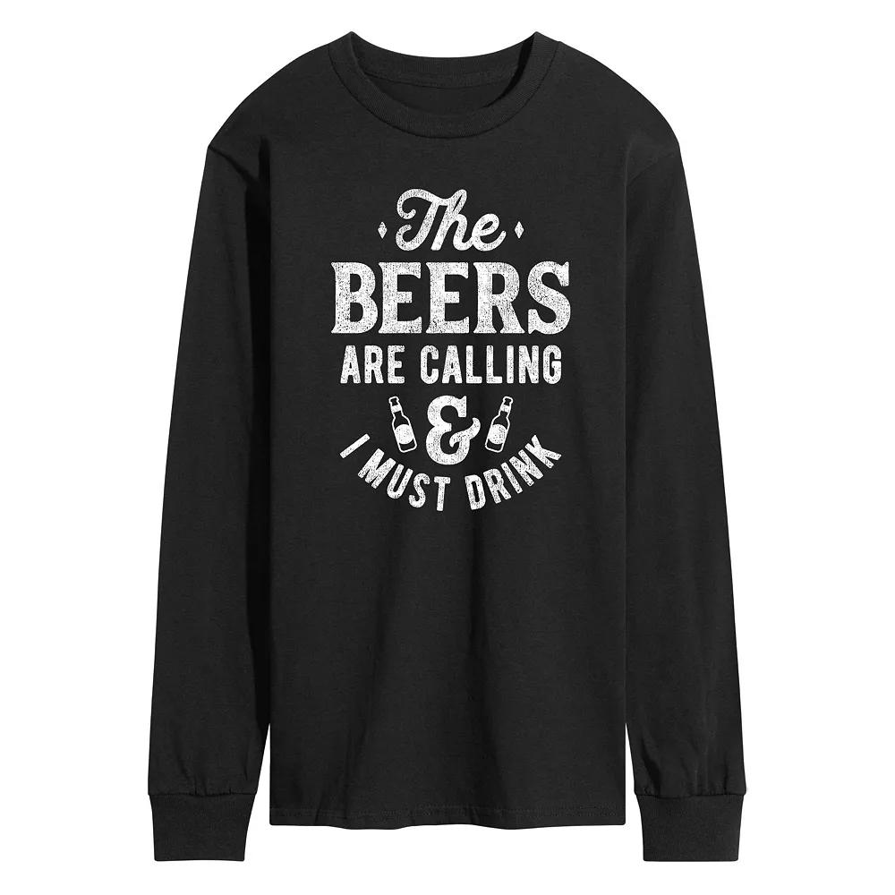 Keep it cool with this Mens The Beers Are Calling Long Sleeve Tee. Keep it cool with this Mens The Beers Are Calling Long Sleeve Tee. FEATURES Crewneck Long sleeveFABRIC & CARE Solid cotton, heather, cotton, polyester Machine wash Imported Color: Black. Gender: male. Age Group: adult. Pattern: Graphic.