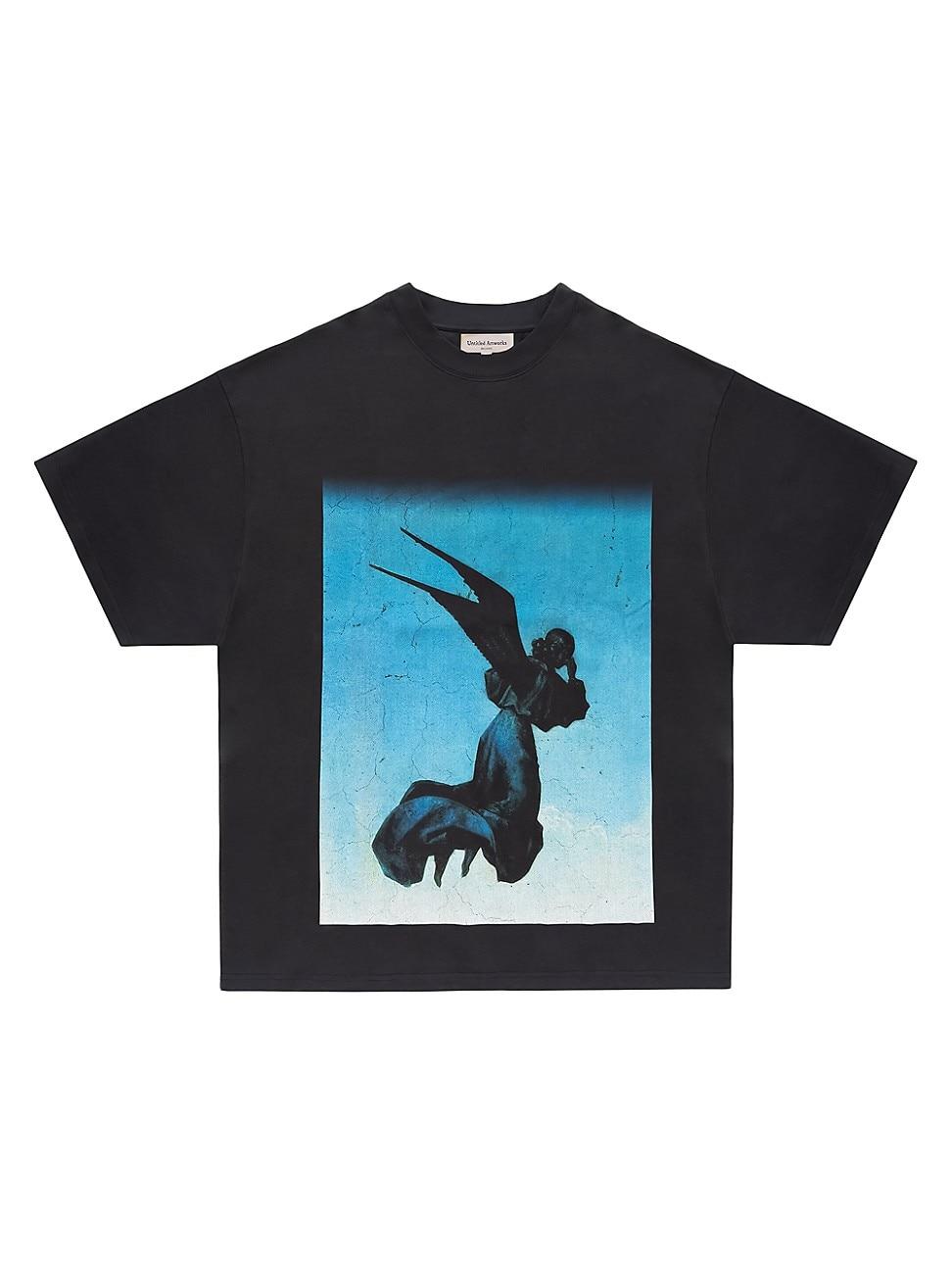 From the The Beginning Is The End Collection. Crafted of washed cotton, the Angel crewneck T-shirt from Untitled Artworks is cut for a wide oversized fit with cropped shoulders. A graphic digital print and logo embroidery at the back collar complete the look. Round collar Short sleeves No stays in collar Finished hem. Bend back hem 100% cotton Machine wash Imported SIZE & FIT Model measurements: 62 tall, 40 chest, 31 waist Model is wearing a US size Medium. Mens Denim & Contemp - Contemporary Tops > Untitled Artworks > Saks Fifth Avenue > Barneys. Untitled Artworks. Color: Black. Size: XXL.