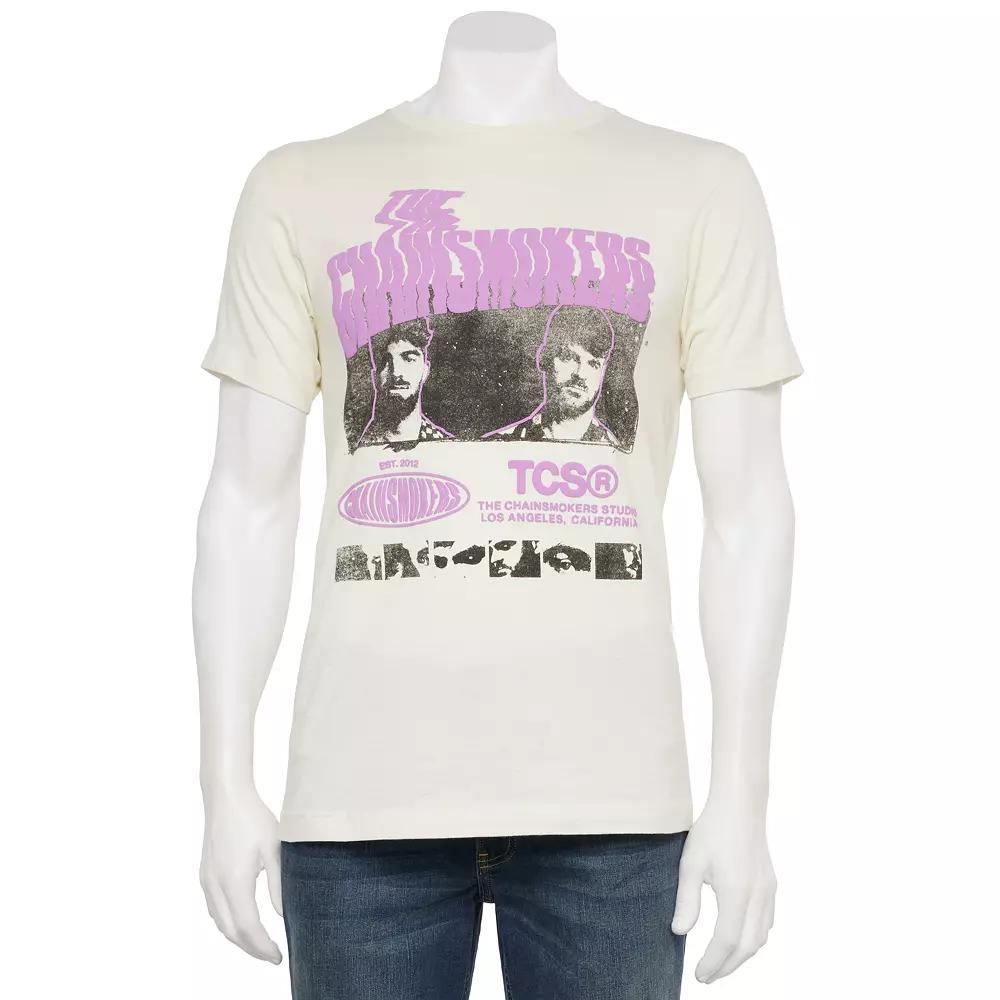 Show your love for the iconic duo with this Mens The Chainsmokers Concert Tour Crewneck Graphic Tee. Show your love for the iconic duo with this Mens The Chainsmokers Concert Tour Crewneck Graphic Tee. FEATURES Crewneck Short sleevesFABRIC & CARE Cotton Machine wash Imported Color: Tofu. Gender: male. Age Group: adult.