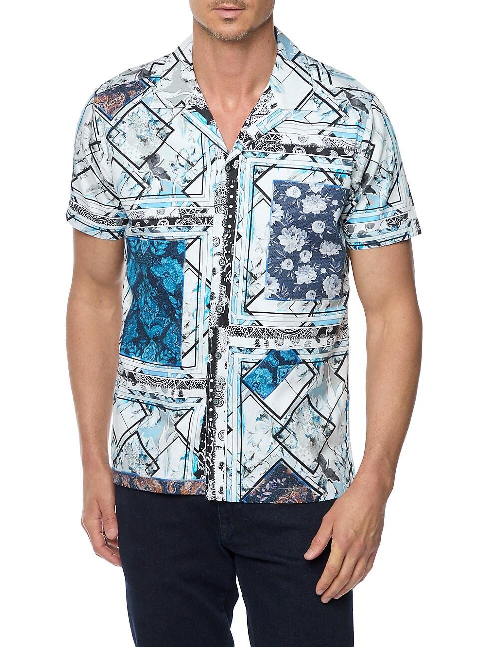 A patchwork design elevates a classic short-sleeve button-up shirt. This style boasts a floral geo print with embroidery and contrasting patterns. Camp collar Short sleeves Button-front closure 97% cotton/3% spandex Machine wash Imported SIZE & FIT Model measurements: 62 tall, 40 chest Model is wearing a US size Medium. Mens Modern Coll & Outer - Contemp Classic Collecti > Robert Graham > Saks Fifth Avenue > Barneys. Robert Graham. Size: Small.
