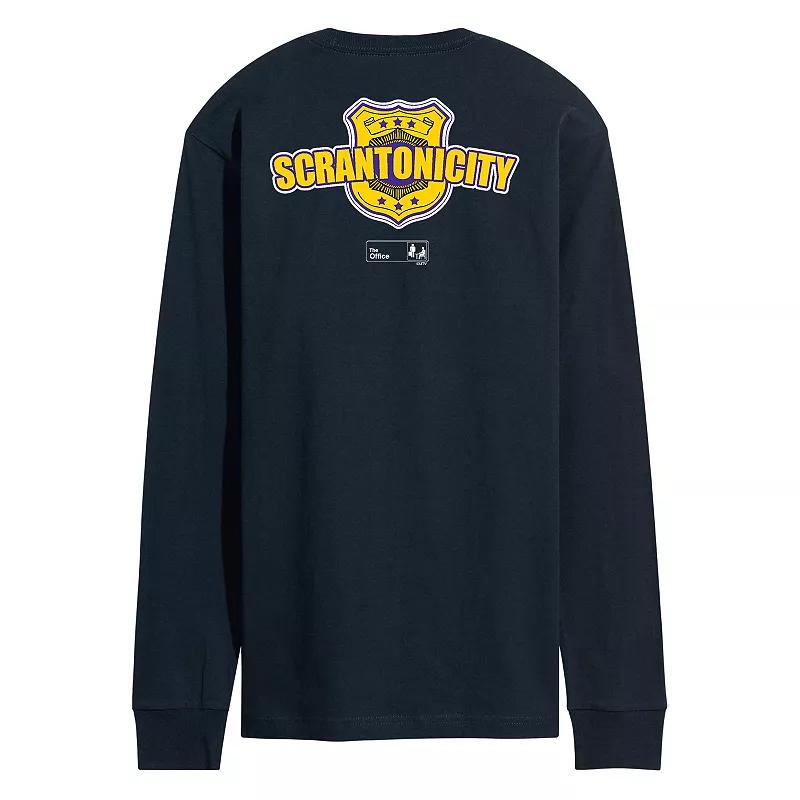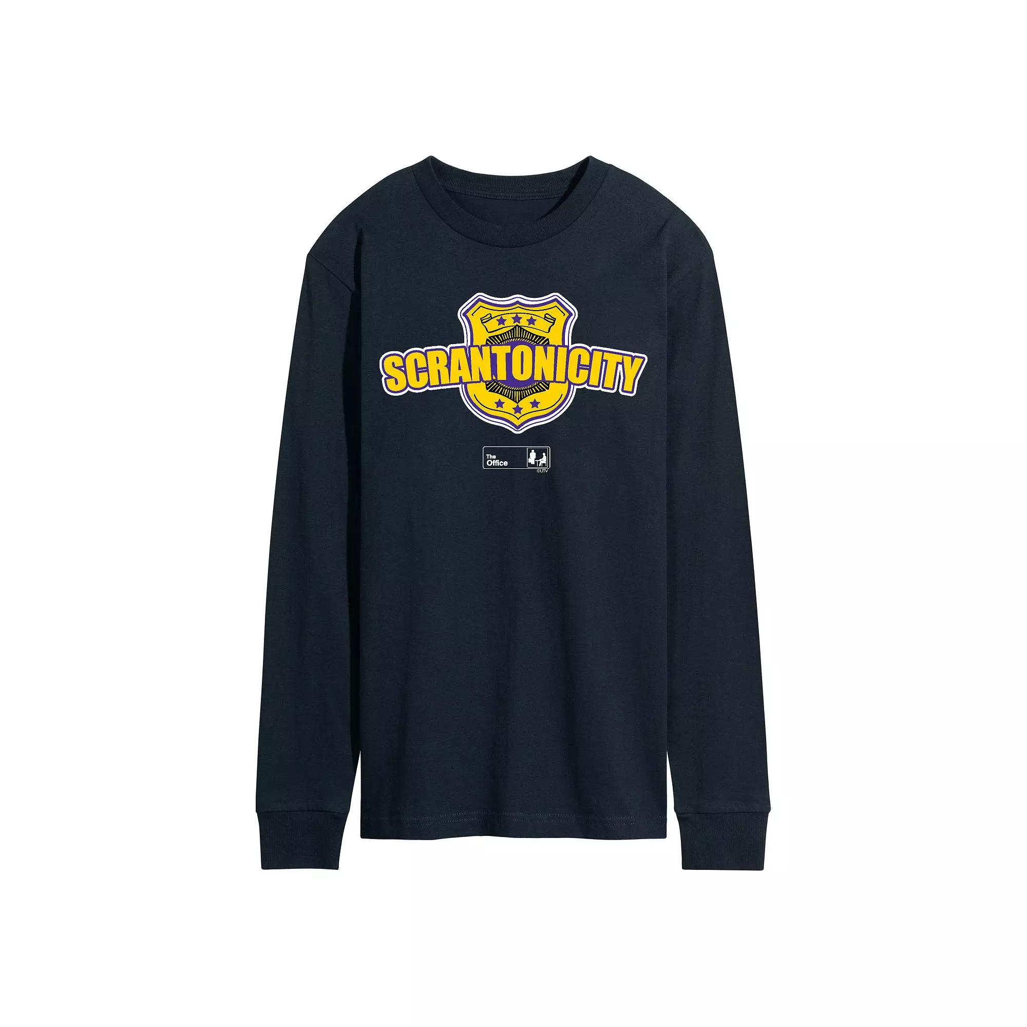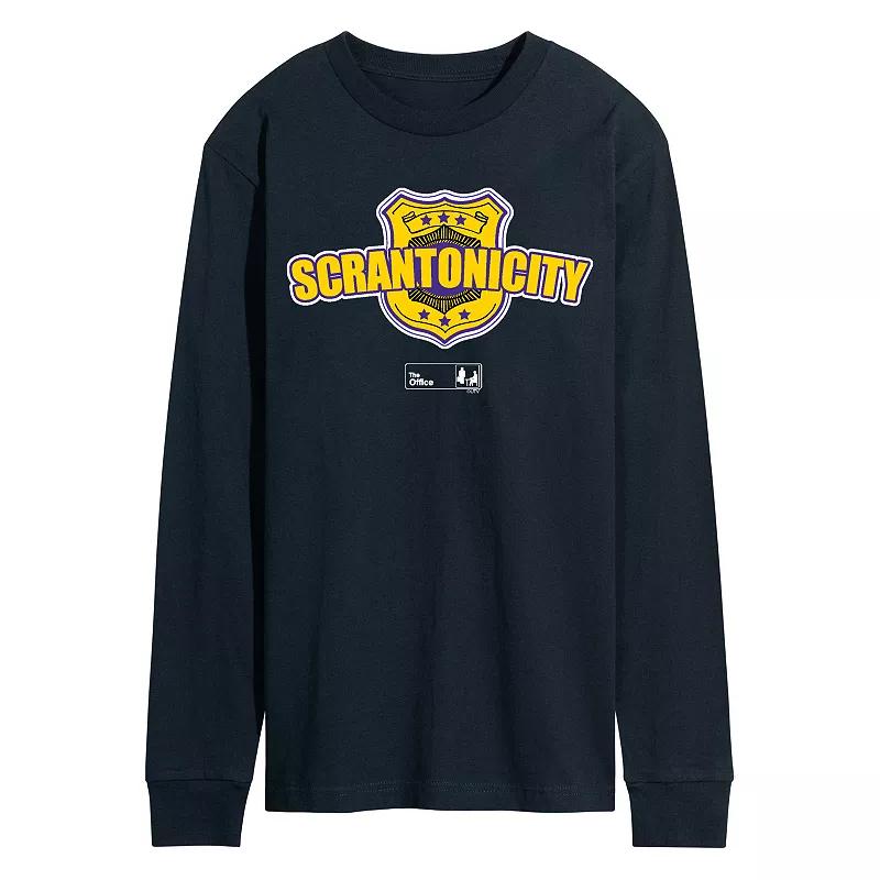 The Office fans will want this mens long sleeve graphic tee. The Office fans will want this mens long sleeve graphic tee. FEATURES Crewneck Long sleevesFABRIC & CARE Solid: cotton; Heather: cotton, polyester Machine wash Imported Color: Navy. Gender: male. Age Group: adult.