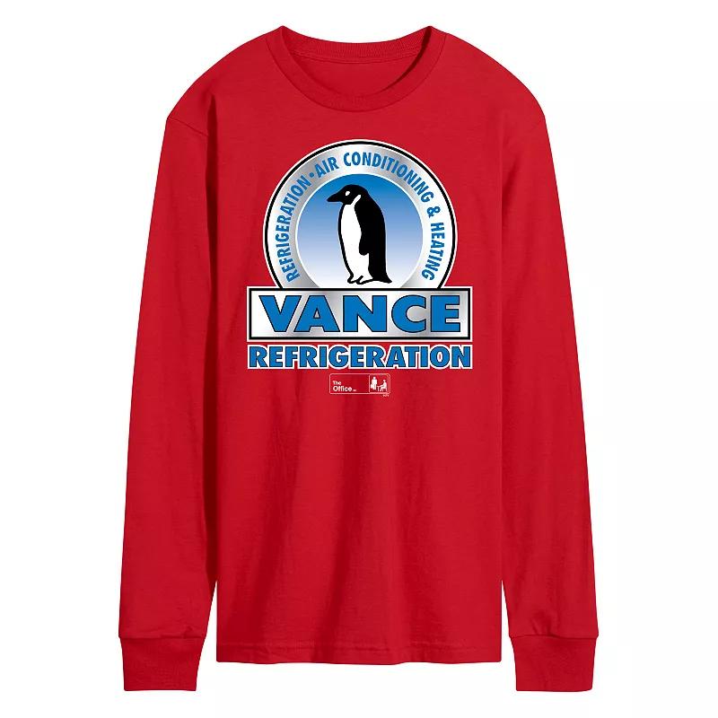 The Office fans will want this mens long sleeve graphic tee. The Office fans will want this mens long sleeve graphic tee. FEATURES Crewneck Long sleevesFABRIC & CARE Solid: cotton; Heather: cotton, polyester Machine wash Imported Color: Red. Gender: male. Age Group: adult.