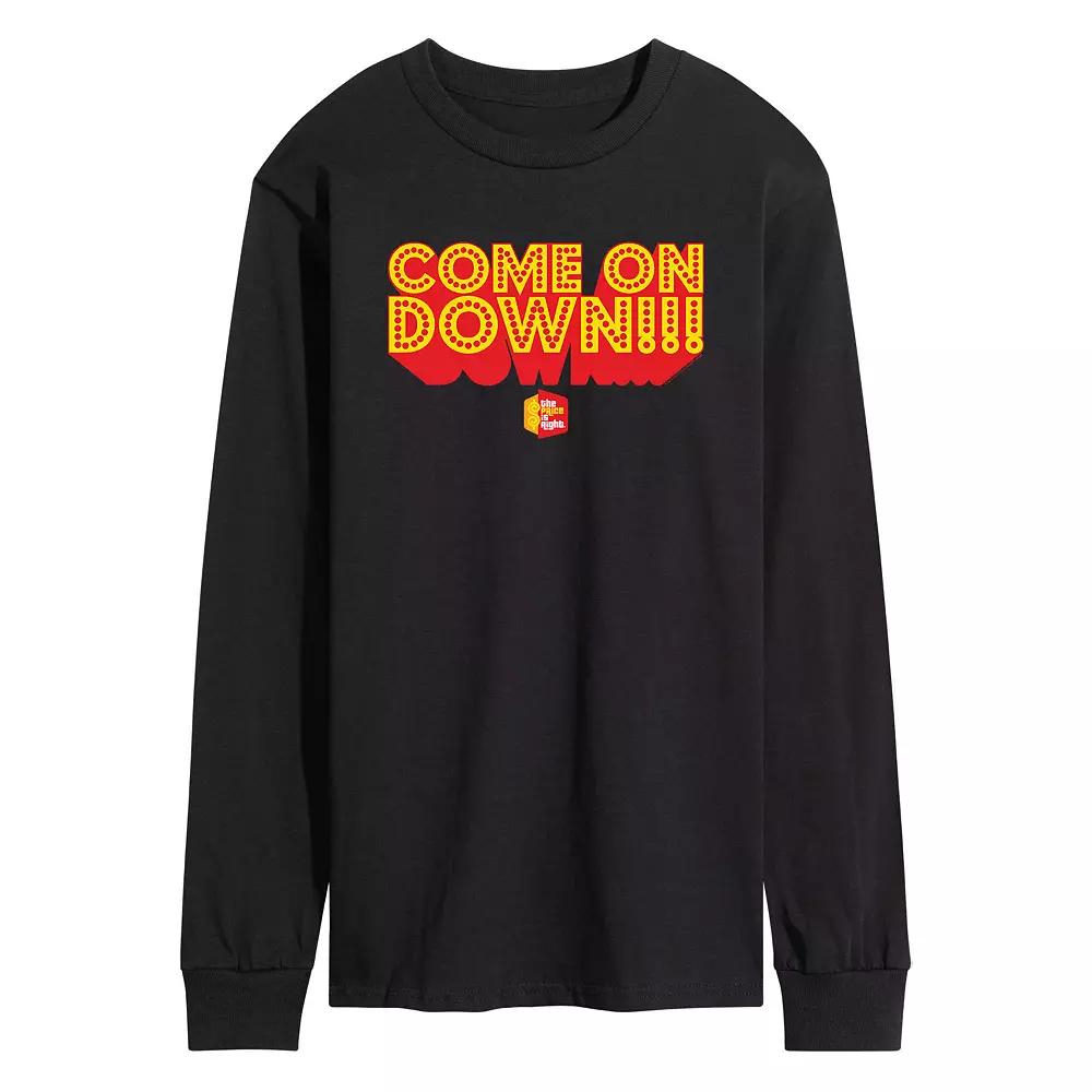 Show off your love for your favorite TV game show with this men's The Price Is Right graphic long sleeve t-shirt. Our adult long sleeve t-shirt is lightweight, soft and durable; perfect for everyday wear! | The Price Is Right Men's Come On Down Long Sleeve Graphic T-Shirt, Black, 2Xl