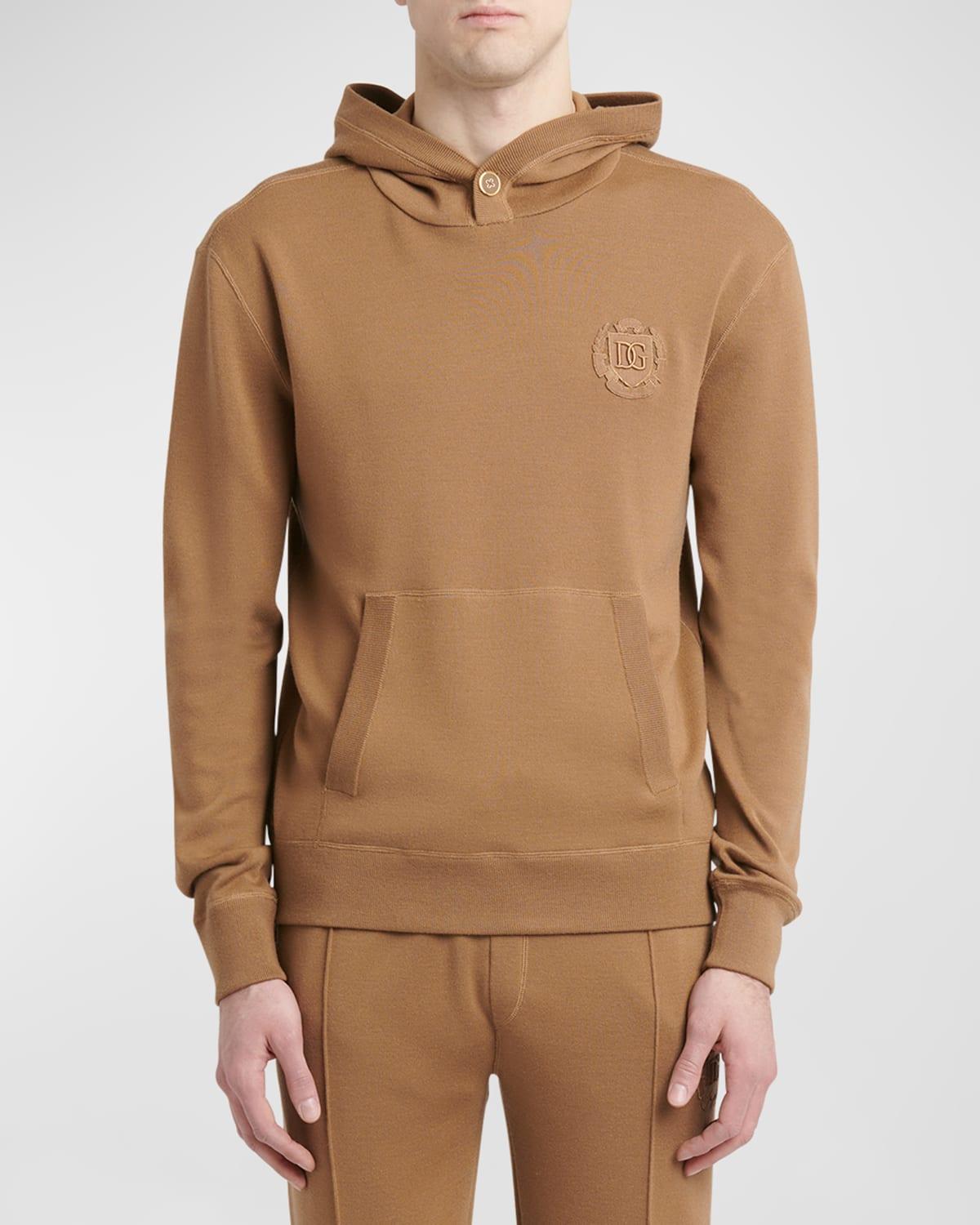 Dolce&Gabbana sweatshirt in soft interlock knit Buttoned hood Tonal logo embroidery at chest Dropped shoulders Long sleeves Ribbed trim Virgin wool/silk/cashmere Made in Italy Model is 6'1"/185cm.
