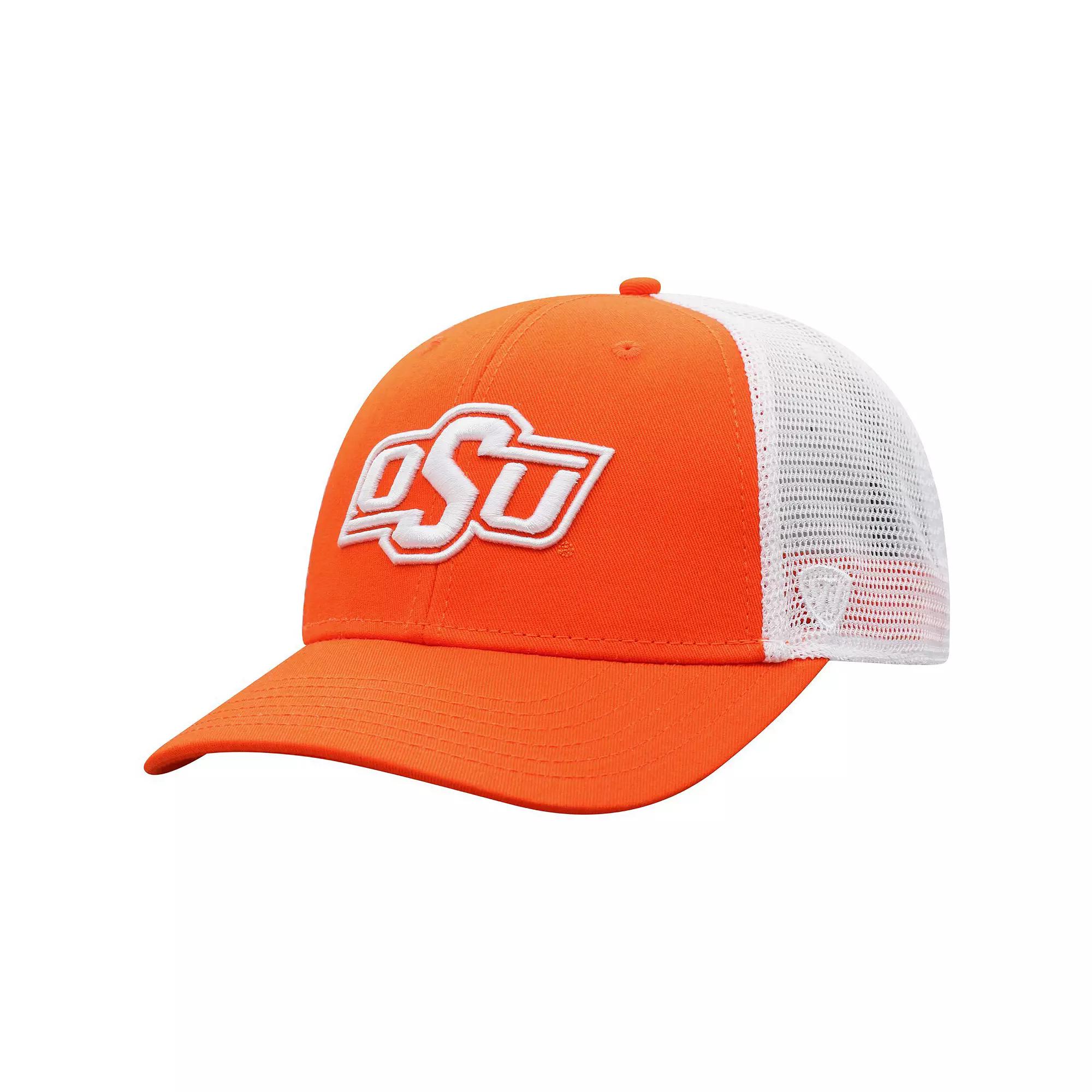 Stay shaded on sunny days with this bold Oklahoma State Cowboys trucker hat. This Top of the World cap features embroidered graphics on the crown and a structured design for the right fit. In addition, the mesh mid and rear panels offer a breezy feel that makes it the perfect choice when you want to cheer on the Oklahoma State Cowboys with a full-fledged look.Stay shaded on sunny days with this bold Oklahoma State Cowboys trucker hat. This Top of the World cap features embroidered graphics on the crown and a structured design for the right fit. In addition, the mesh mid and rear panels offer a breezy feel that makes it the perfect choice when you want to cheer on the Oklahoma State Cowboys with a full-fledged look.PRODUCT FEATURESOfficially licensedSnap ClosureWoven clip tagBrand: Top of the WorldEmbroidered graphics with raised detailsStructured fitFour mesh mid and rear panels with eyeletsMid CrownTwo solid front panels with eyeletsSurface washableImportedCurved billOne size fits most Size: One Size. Color: Orange. Gender: male. Age Group: adult. Material: COTTON.