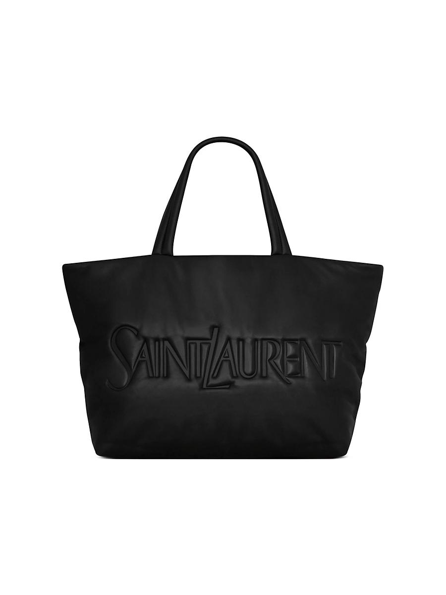 Wide puffer tote bag in nappa lambskin with a complete leather lining and Saint Laurent signature. Dimensions: 41-50 x 43 x 17 cms/ 16.1-19.7 x 16.9 x 6.7 inches Made in Italy. Lsd Handbags - Saint Laurent > Saint Laurent > Saks Fifth Avenue > Barneys. Saint Laurent. Color: Black.