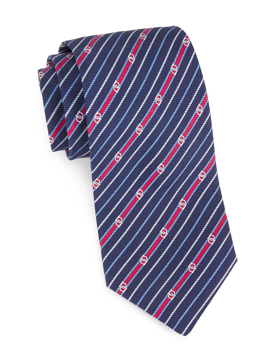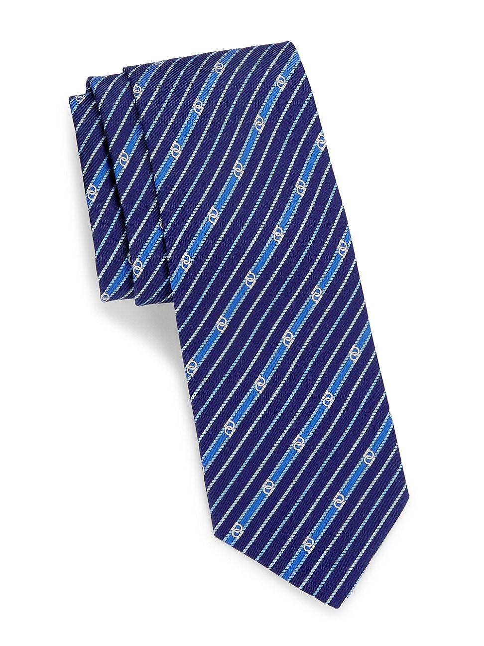 Crafted of luxurious silk, the Treccia tie is adorned with a striped print accented by FERRAGAMOs interlocked Gancini logo motif. 100% silk Dry clean Made in Italy SIZE About 3.25 W ABOUT THE BRAND Italian designer Salvatore Ferragamo began his journey in 1927 with a vision of creating the worlds most beautiful shoes. The label expanded to menswear in the 1970s, and remains famed for its made-in-Italy pieces. The craftsmanship inherent in its shoes is also found in accessories like sunglasses, belts and ties. The brands signature Gancini logo-a backwards horseshoe-can be found on its classic loafers and fine leather goods. Men Luxury Coll - Designer Neckwear > Ferragamo > Saks Fifth Avenue > Barneys. FERRAGAMO. Color: Blue.