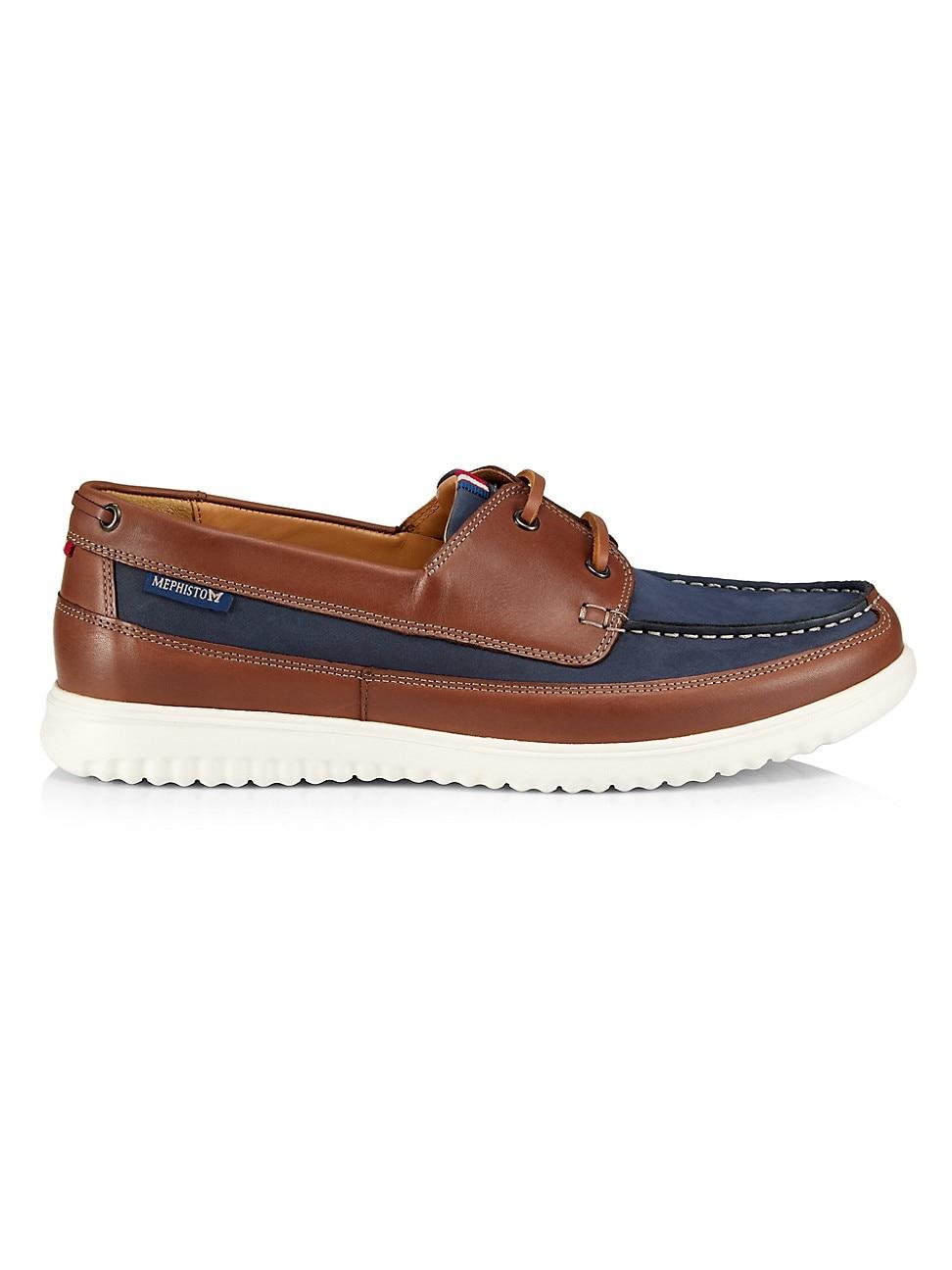 Ultra-comfortable boat shoes equipped with a removable insole that absorbs shock. Leather upper Almond toe Slip-on style Removable insole Synthetic sole Made in Portugal. Mens Shoes - Mens Classic Footwear > Mephisto > Saks Fifth Avenue > Barneys. Mephisto. Color: Navy. Size: 7.