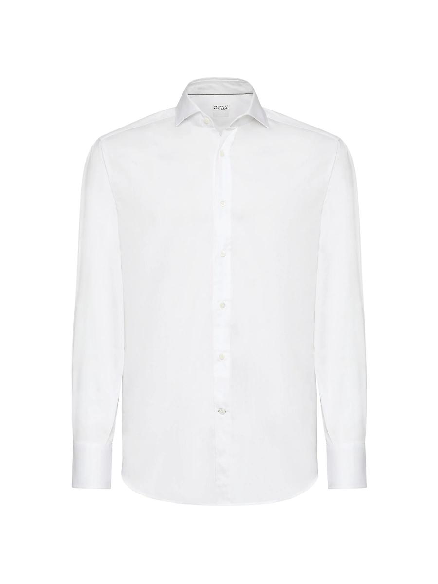 Twill basic fit shirt with spread collar. Placket closure with mother of pearl buttons Spread collar Cuffs have two mother of pearl buttons Basic-fit Machine wash on delicate cycle below 30. Do not bleach. Do not tumble dry, iron at low heat. Dry clean the garment as an alternative 100% cotton Made in Italy. Lsd Rtw - Brunello Cucinelli Rtw > Brunello Cucinelli > Saks Fifth Avenue > Barneys. Brunello Cucinelli. Color: Pale Blue. Size: Large.