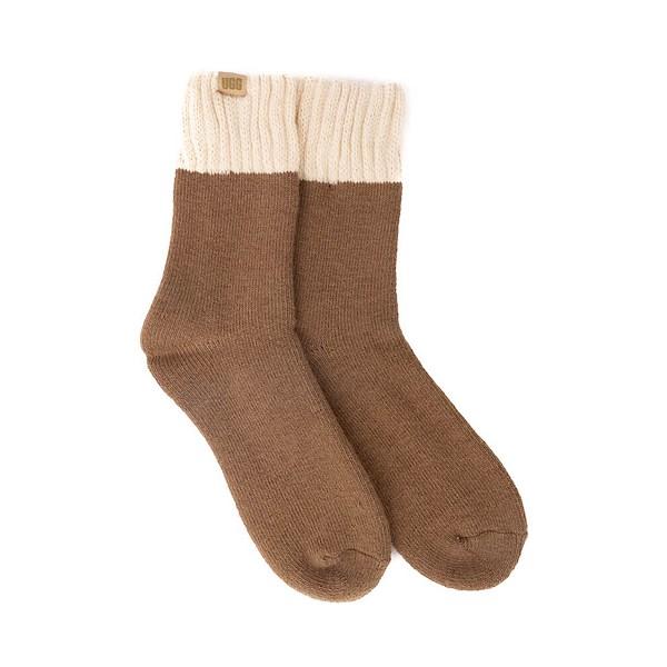 This cozy 3/4 crew sock features a contrasting cuff decked with our UGG Logo. Wear with our Neumel or sneakers for an effortlessly stylish vibe. Cozy 3/4 crew sock with contrast cuff. 39% Polyester/29% Acrylic/25% Nylon/5% Wool/1% Rubber/1% Elastane/ 1% Elastane. 8 inch height. Soft twill tape with The UGG Logo on top cuff. Sock size: 10-13. Fits shoe size: 8-13. Imported. UGG Mens Camdyn Cozy Sock Polyester Blend in Chestnut/Cream