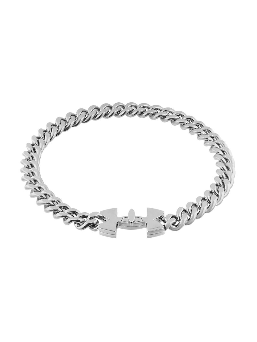 Chain necklace Integrated closure system within Under Armour artwork In collaboration with Under Armour 100% Brass Dimensions: Small: L 17.52 x H 7.64 x W 0.4 inch Dimensions: Medium: L 18.51 x H 7.64 x W 0.4 inch Dimensions: Large: L 19.89 x H 7.64 x W 0.4 inch Made in Italy. Lsd Rtw - Balenciaga Rtw > Balenciaga > Saks Fifth Avenue > Barneys. Balenciaga. Color: Silver. Size: Medium.