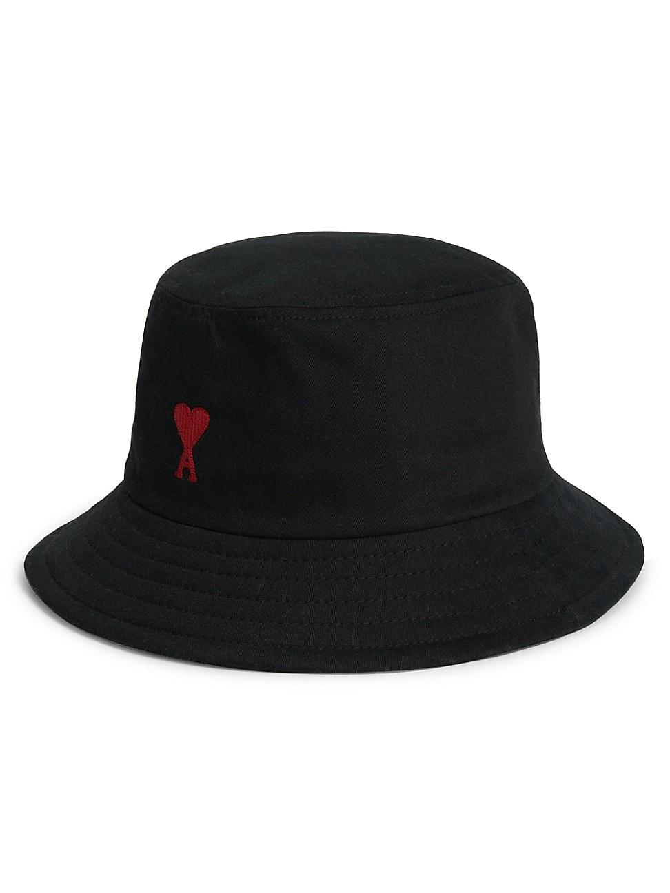 Carfted of cotton canvas, this AMI Paris bucket hat is embroidered with an ADC heart logo. 100% cotton Spot clean Made in Italy. Men Accessories - Contemporary Accessories > Ami Paris > Saks Fifth Avenue > Barneys. AMI Paris. Color: Black. Size: Small.