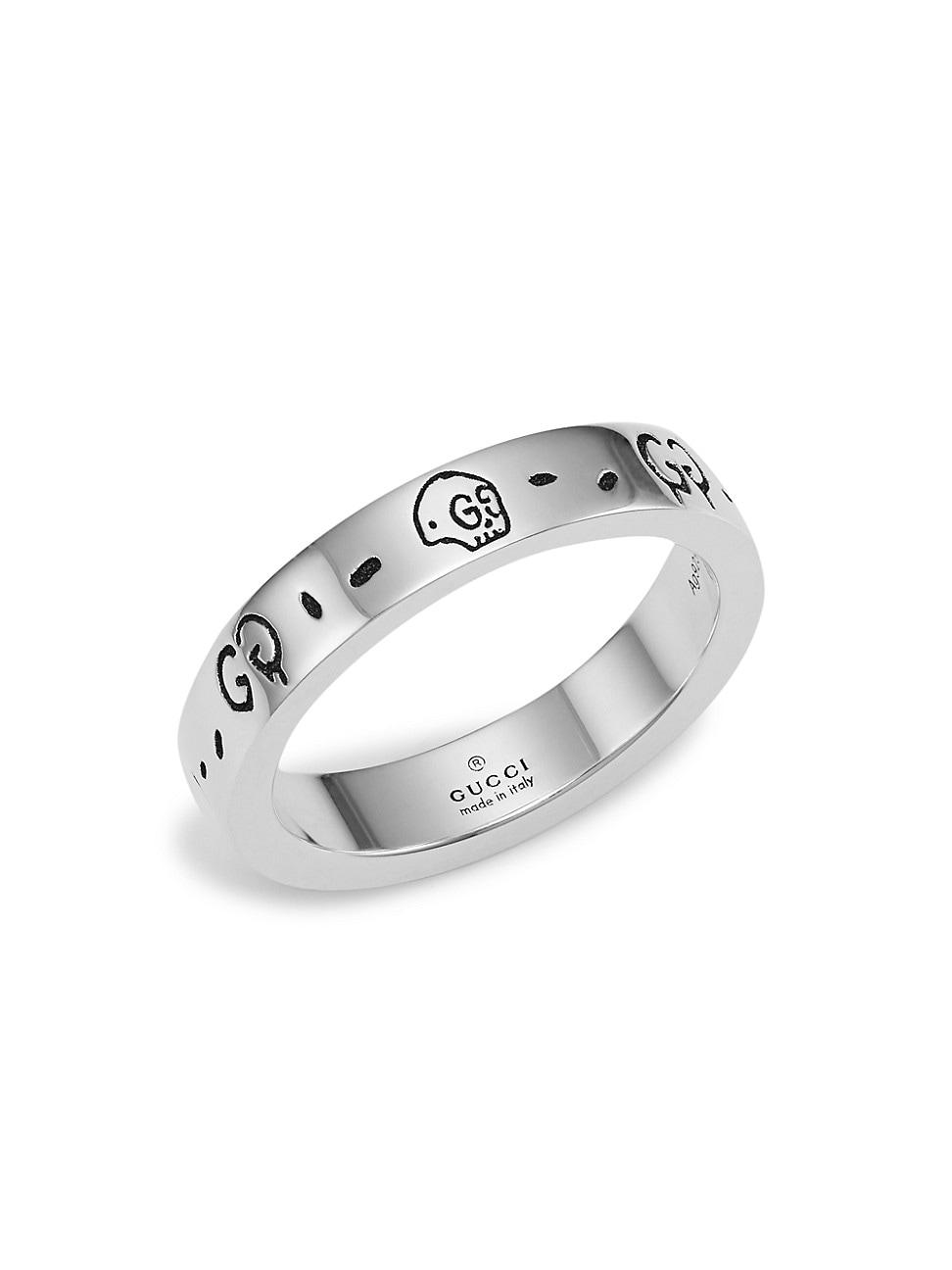 Ghost ring in sterling silver Sterling silver Width, about 0.25 Made in Italy ABOUT THE BRAND First launched in 1921 by Guccio Gucci, the Italian luxury fashion house quickly became known for its fine leather craftsmanship and accessories. Under the helm of Creative Director Alessandro Michele since 2015, the brands opulent designs include shoes, clothing and accessories-often boasting the iconic horsebit motif. Men Accessories - Jewelry > Gucci > Saks Fifth Avenue > Barneys. Gucci. Color: Silver. Size: 9.5.