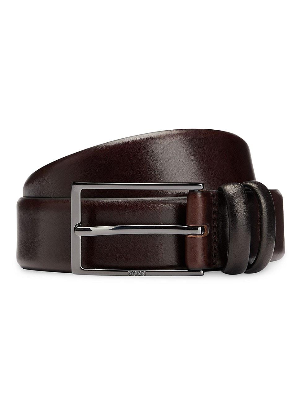 An elegant belt with a 3.5cm width by BOSS, designed for business and casual looks alike. Securing with a logo-trimmed pin buckle in polished gunmetal, this belt is crafted in leather with a vegetable-tanning process for enhanced character. A double leather keeper gives this accessory a contemporary touch.For the best fit, we advise to order a belt one size larger than your waist size. Engraved logo on closure Width: 3.5 cm (1.4 inches) Hardware finishing: Polished gunmetal hardware Partially lined Imported. Lsd Mens - Mens Rtw Lsd Mp > Boss > Saks Fifth Avenue > Barneys. BOSS. Color: Dark Brown. Size: 30.