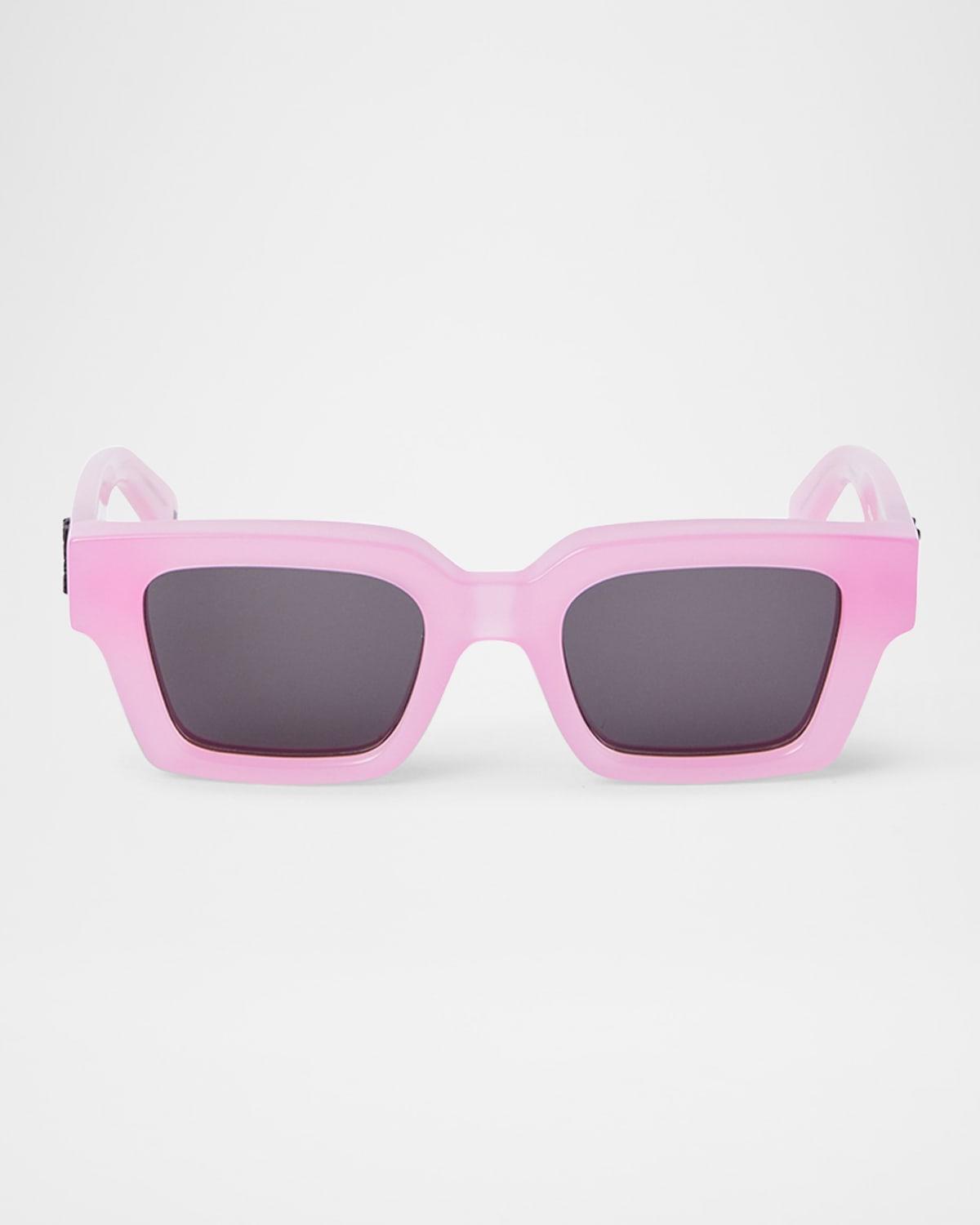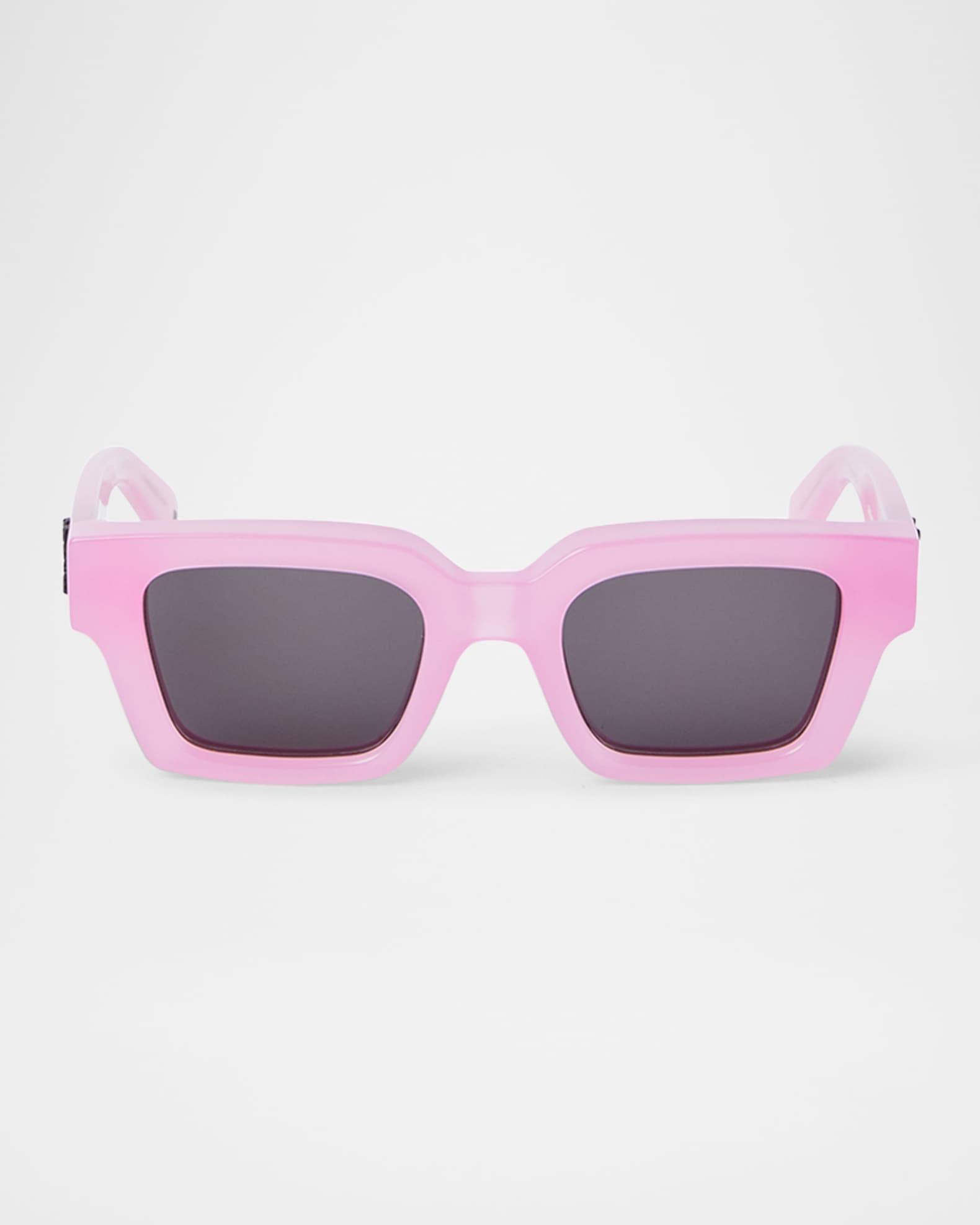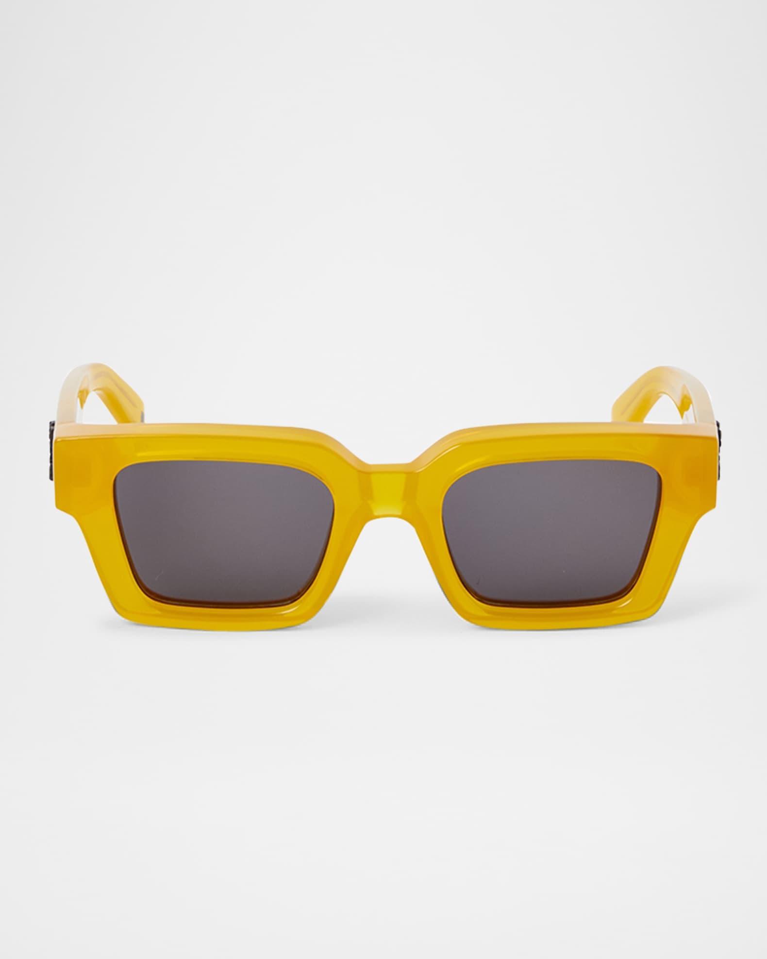 Off-White "Virgil" square sunglasses in acetate Lens/bridge/temple (in mm): 53 - 22 - 145 Solid-color lenses Saddle nose bridge Arrows hardware on the temples Tapered arms Exposed metal corewire Curved temple tips Acetate 100% UVA/UVB protection Made in Italy Proposition 65 warning for California residents