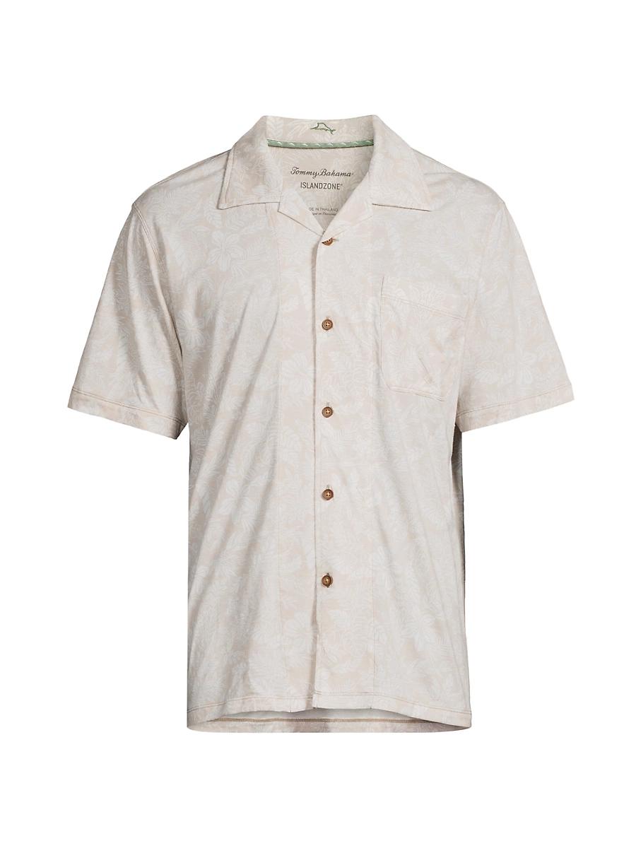 The Vista Mar camp shirt from Tommy Bahama is crafted of slub jersey with wicking, quick-dry, and UPF technology. A tropical palm leaf print adorns this relaxed style. Camp collar Short sleeves Chest patch pocket Button-front closure 35% lyocell /30% nylon /21%linen /14% cotton Machine wash Imported SIZE & FIT About 29 from shoulder to hem Model measurements: 62 tall, 40 chest, 31 waist Model is wearing a US size Medium. Mens Modern Coll & Outer - Contemp Classic Collecti > Tommy Bahama > Saks Fifth Avenue > Barneys. Tommy Bahama. Color: Khaki Sands. Size: Small.
