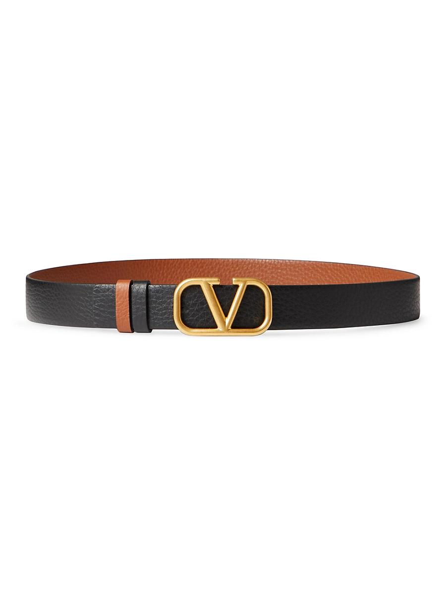 Valentino Garavani VLogo Signature reversible belt in elk-print calfskin leather. Antique brass-finish hardware VLogo Signature buckle Dimensions: H 30 mm / 1.2 in. Made in Italy. Lsd Rtw - Valentino Rtw > Valentino Garavani > Saks Fifth Avenue > Barneys. Valentino Garavani. Color: Saddle Brown Black. Size: 34.