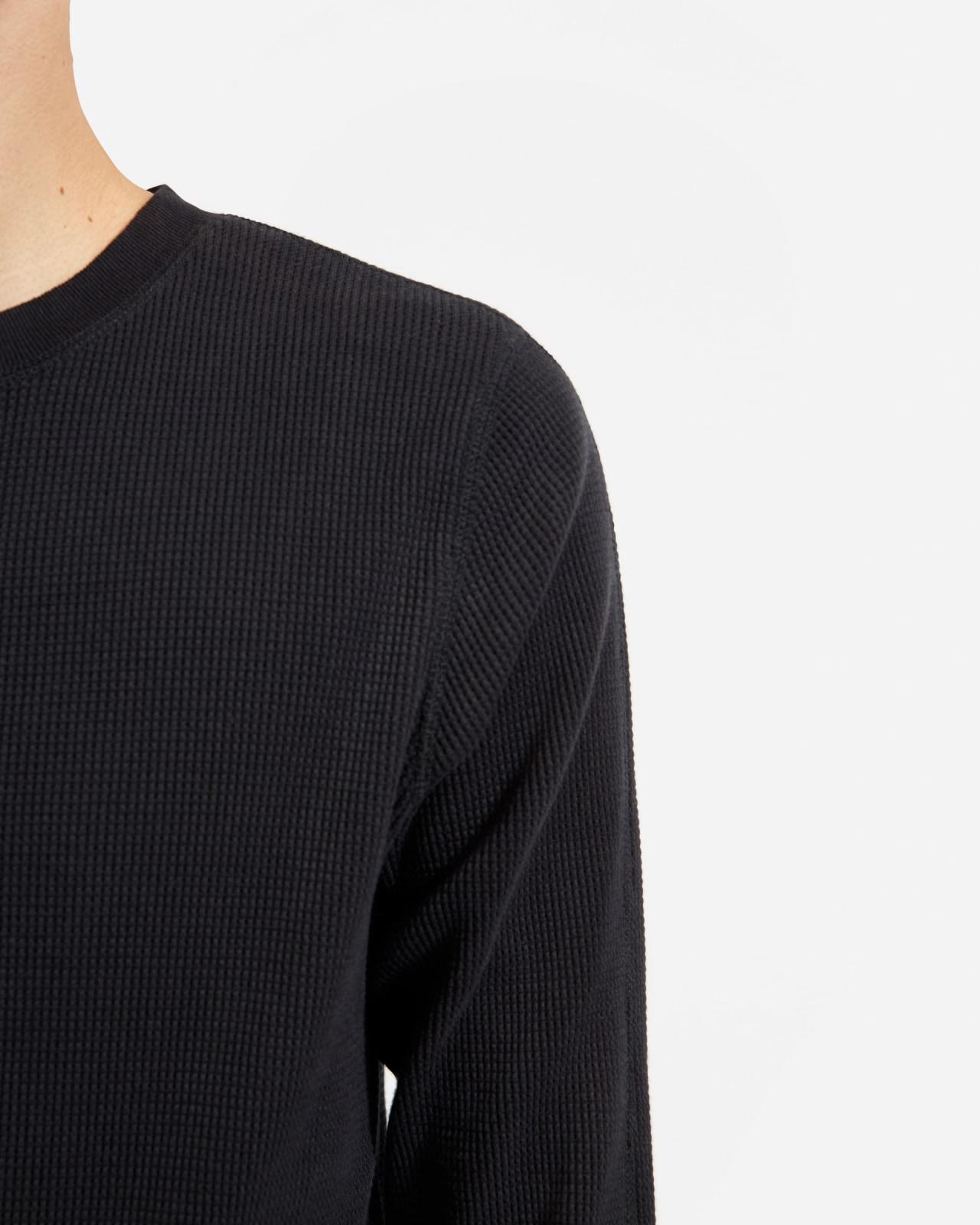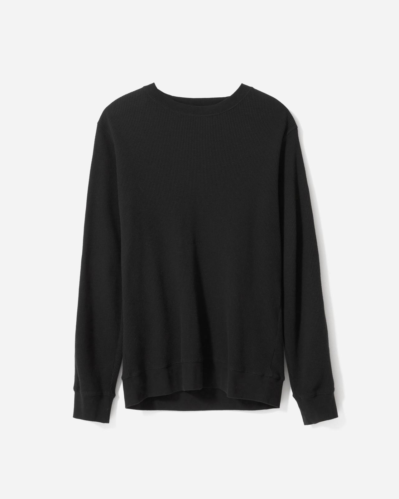 A new winter essential. This soft cotton waffle knit is warm and breathable on its own but really locks in heat when you layer it up. Its so comfortable youll want to wear it all winterso we made it nice enough to wear wherever with attractive durable flatlock stitching down the sleeves. Mens Waffle Long-Sleeve Crew Neck T-Shirt by Everlane in Black, Size XXL
