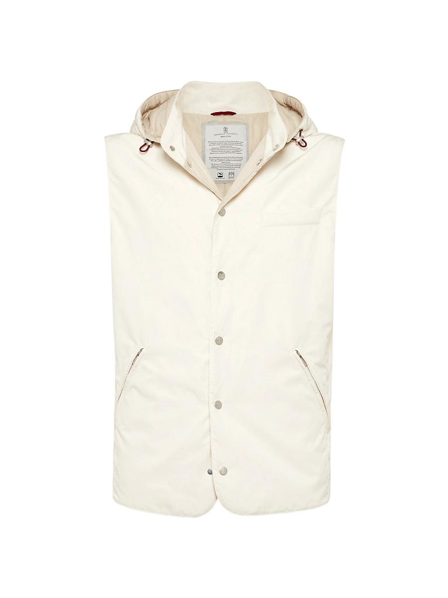 Water-resistant microfiber vest with Thermore padding and detachable hood. Snap closure Stand-up collar Detachable drawcord hood with lining Hand pockets with zipper Two interior pockets with button and pen holder Lined Thermore padding Request dry cleaning at specialist cleaners only, do not bleach, do not tumble dry, iron at low temperature 70% polyester / 30% nylon Made in Italy. Lsd Rtw - Brunello Cucinelli Rtw > Brunello Cucinelli > Saks Fifth Avenue > Barneys. Brunello Cucinelli. Color: Off White. Size: 48.