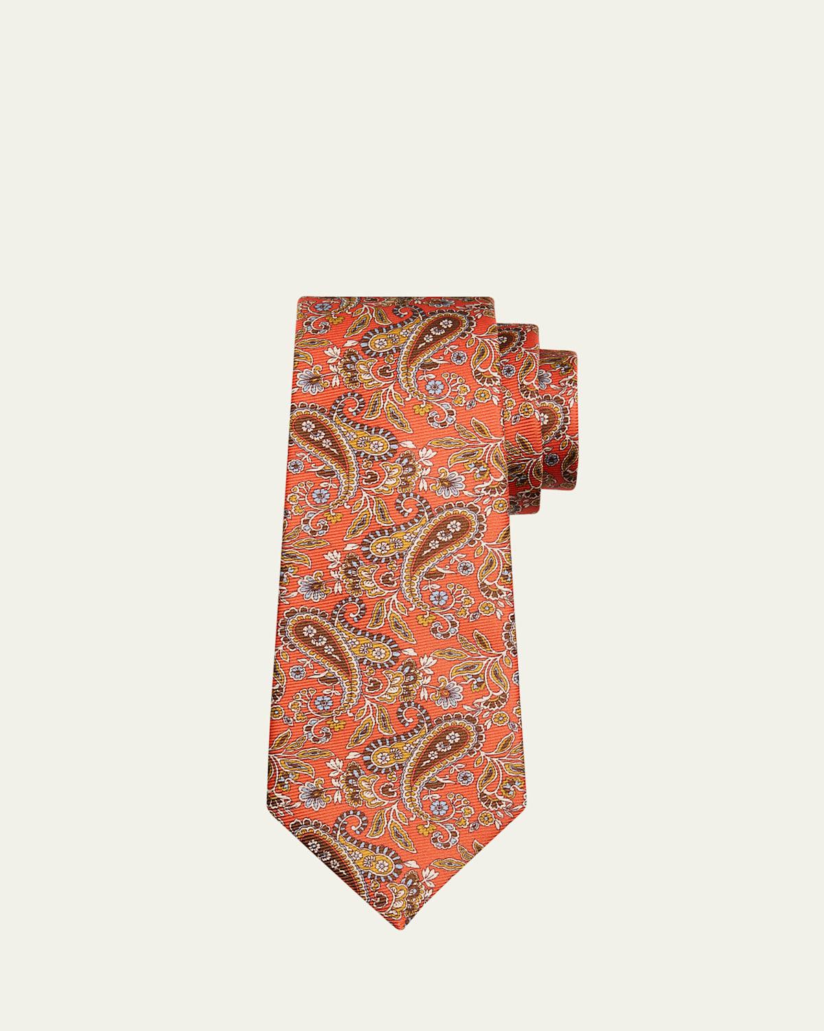 Mens Watercolor Paisley Silk 7-Fold Tie