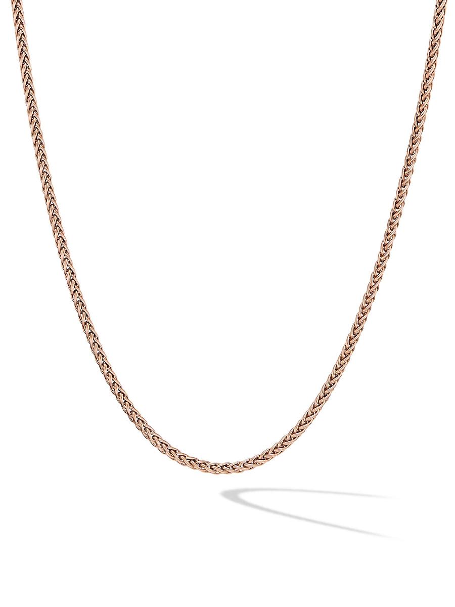 Mens Wheat Chain Necklace in 18K Rose Gold