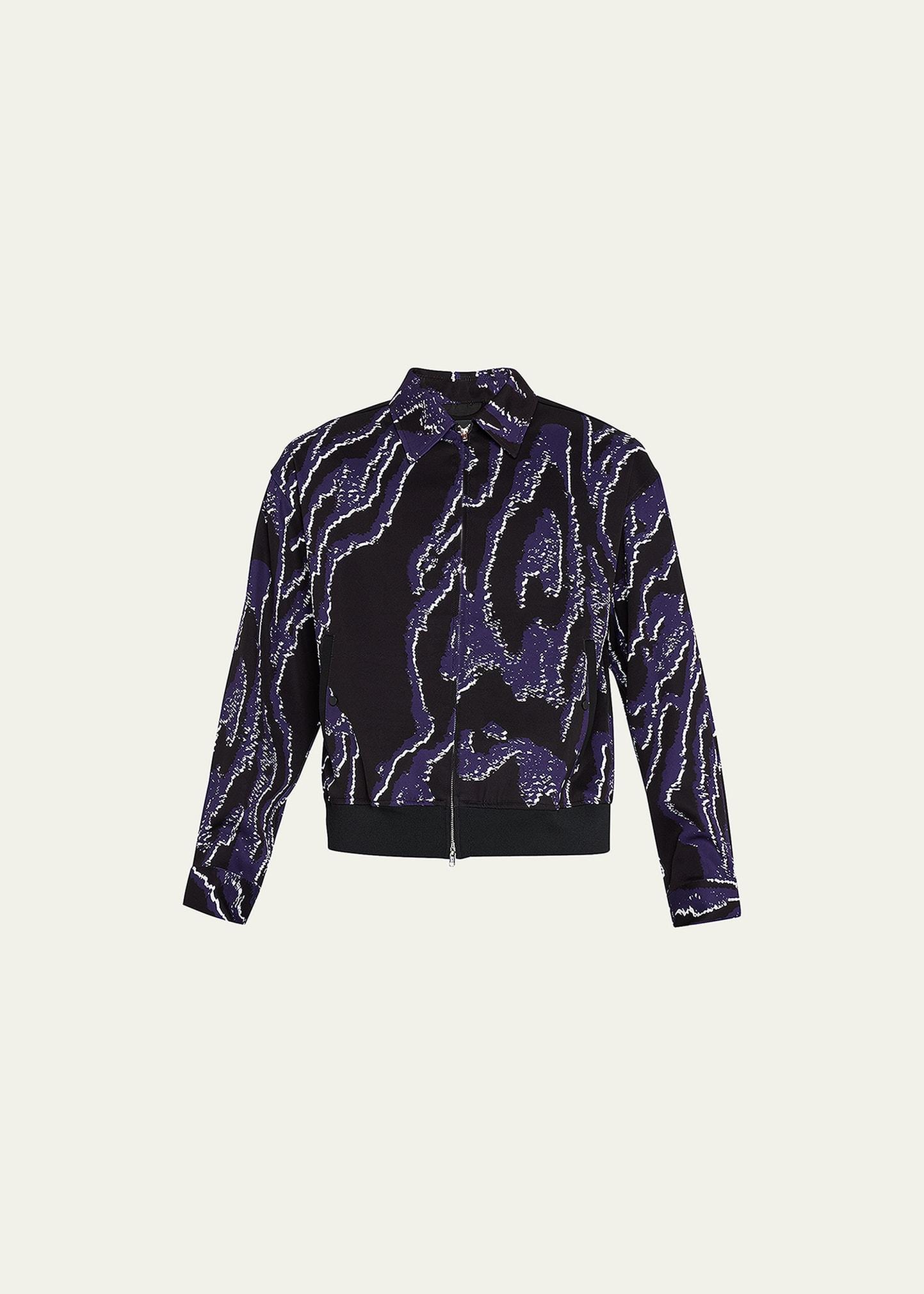 Mens Wood Grain-Print Bomber Jacket