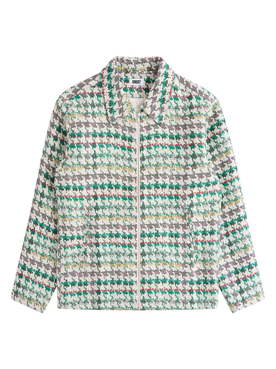 Constructed with a bold jacquard pattern in multi-color, the Woodland Jacquard Jacket adds texture and dimension to a structured silhouette. Designed with a zip closure at the center front, welt zip pockets, and an exaggerated collar, this fully lined jacket blends statement-making design with functional details. 37% cotton, 33% polyester, 12% rayon, 18% acrylic, 330 gsm Lining: 55% polyester, 45% viscose Machine wash, gentle cycle, inside out Do not bleach Dry flat Iron inside out, cool Imported. Lsd Mens - Mens Rtw Lsd Mp > Krost > Saks Fifth Avenue > Barneys. Krost. Size: XL.