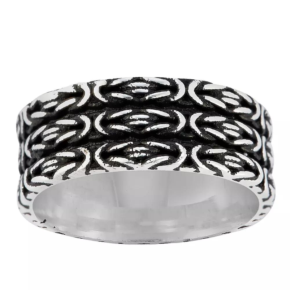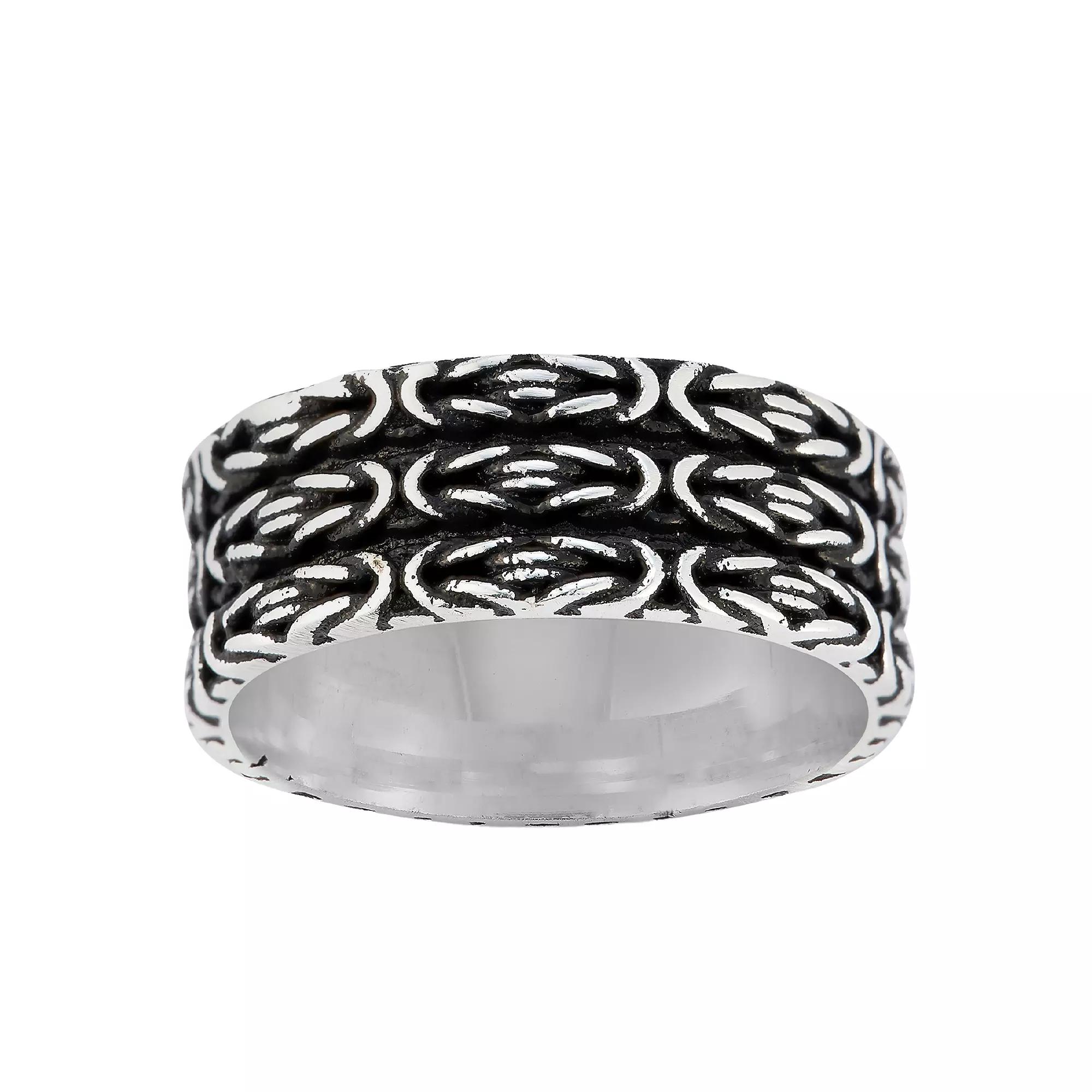 Versatile sterling silver band with glossy rhodium-plating and oxidized finish. The oxidized finish accentuates the exquisite byzantine chain design covering the ring. Rhodium-plated sterling silver with oxidized finish Imported SIZE Width, about 0.35 Click here for a Guide to Jewelry & Watches. Center Core - M Jewelry/watches > Saks Off 5th > Barneys Warehouse. YIELD OF MEN. Size: 9.