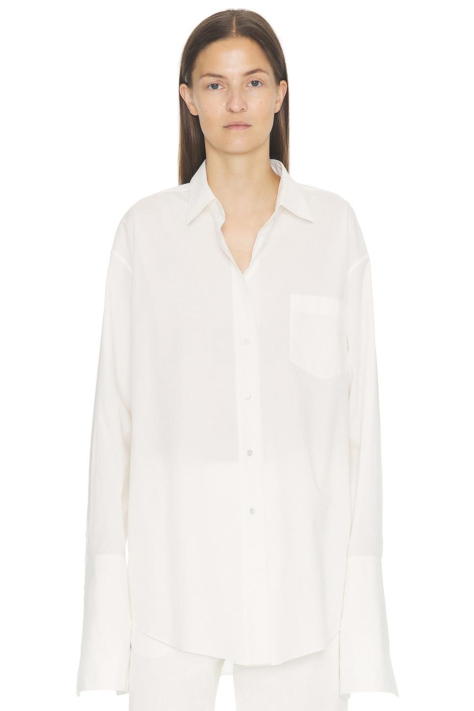 shirt100% cotton / Dry clean only / Front button closure / Breast slip pocket / Button cuffs / Curved hem / Midweight poplin fabric / Garment is made with a semi-sheer fabric, undergarments can show through / Made in Italy / Our Style No. TERX-WS279 / Manufacturer Style No. 10204-W4075 / Model is wearing size 2.