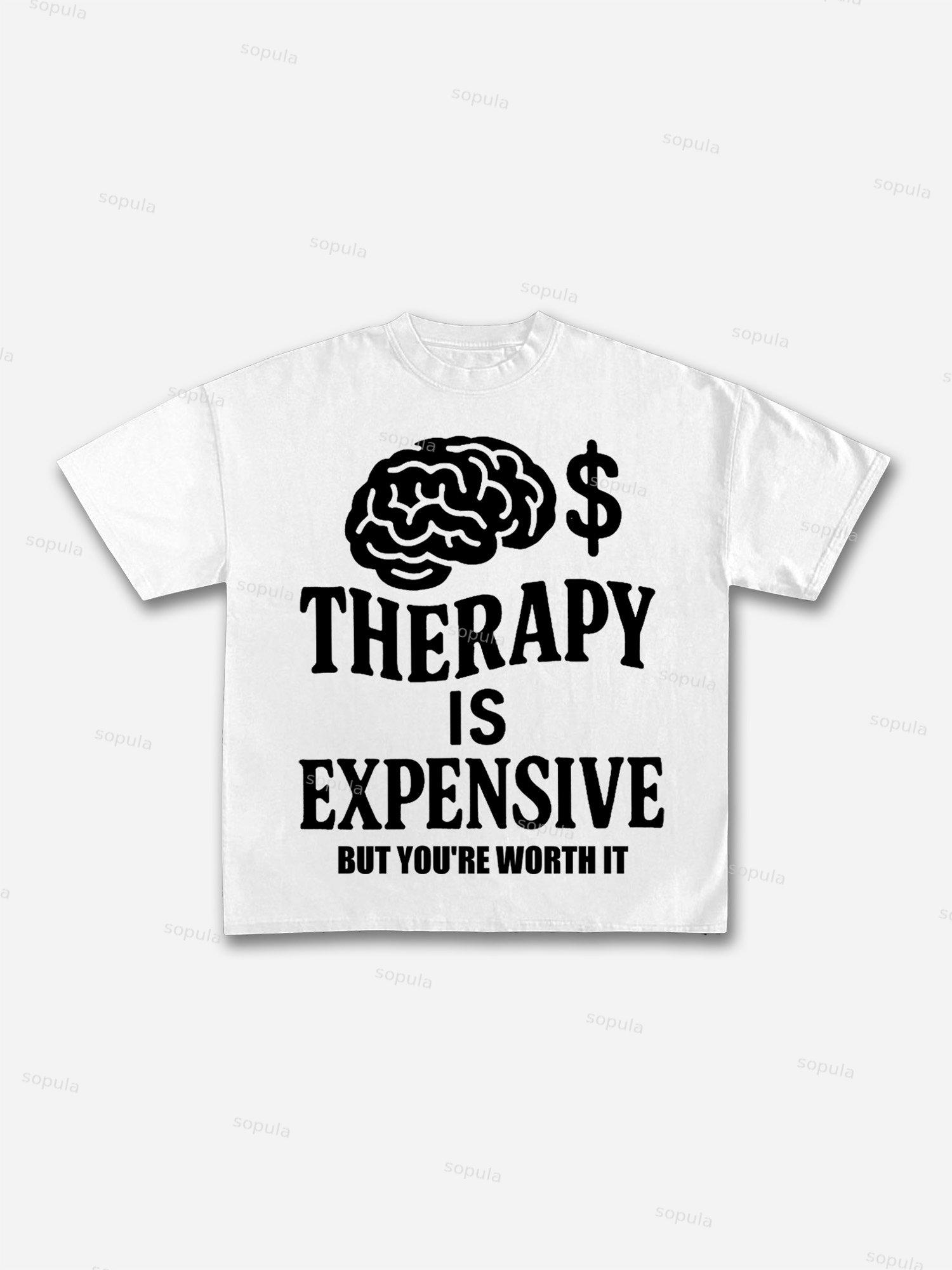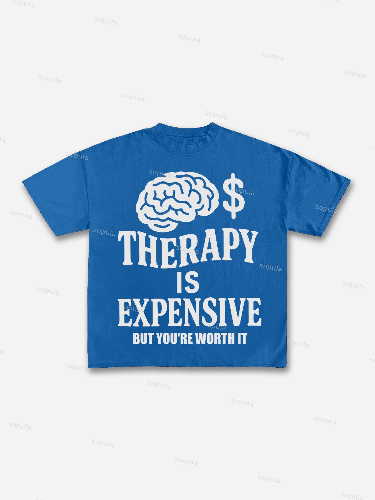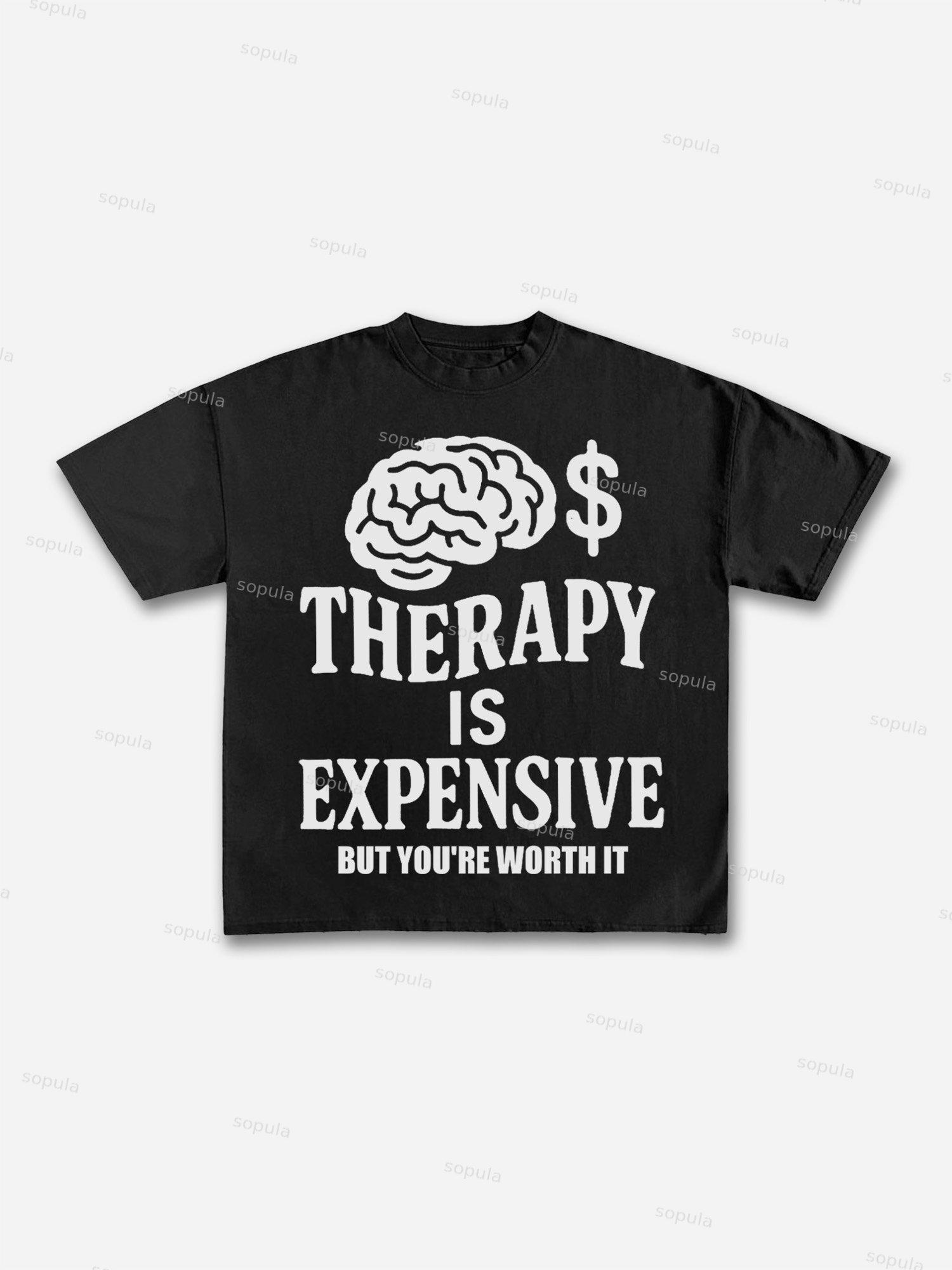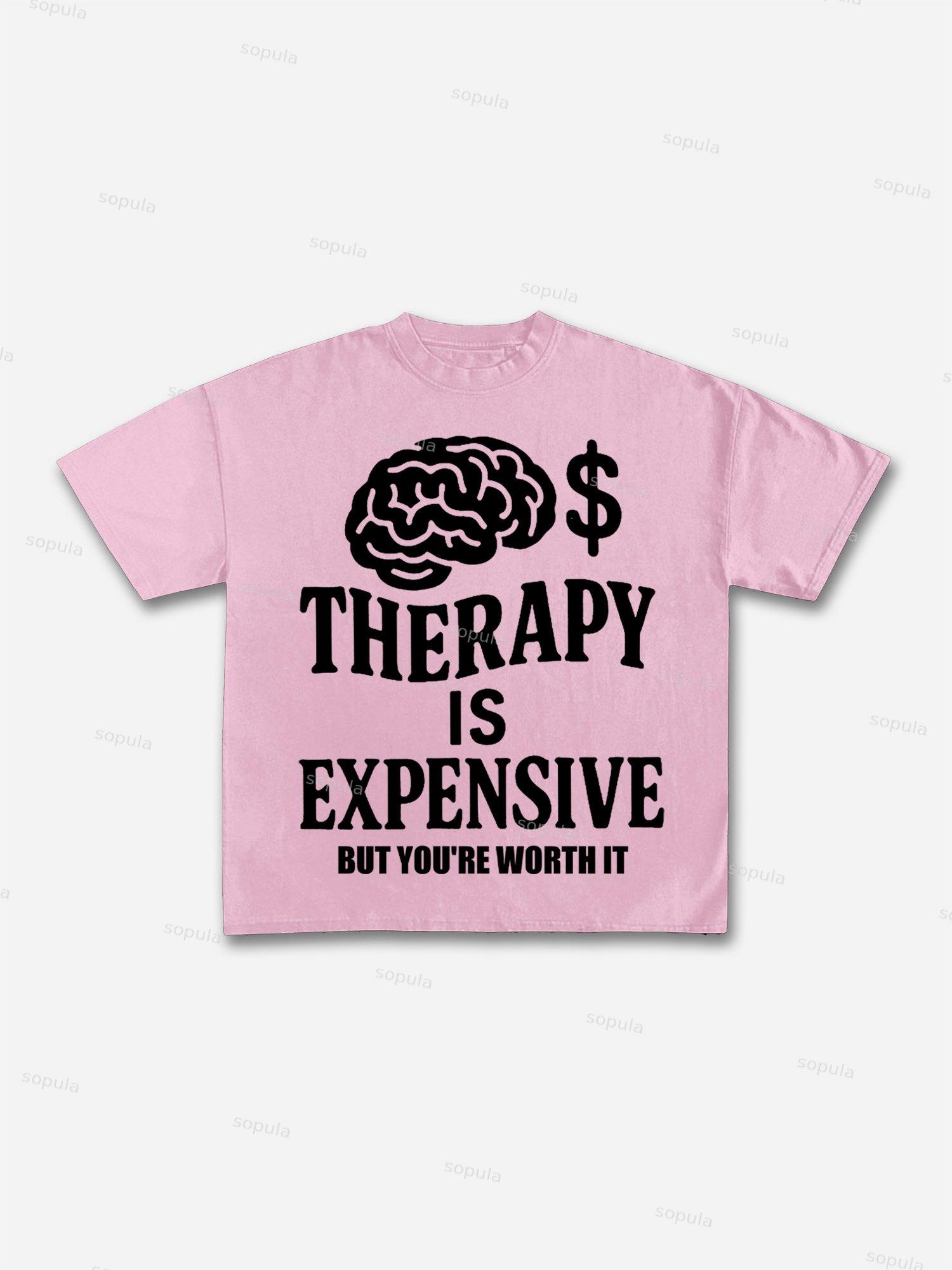 Mental Health Counseling Is Expensive, But You're Worth It Tagline Graphic Cotton T-shirt. SPU: CP-225155-WJY Fabric: 100% Cotton Fabric Weight: 180g Pattern: Letter Process: Printed Gender: Women,Men Season: Summer Size Range: S-3XL Color: Black,Coffee,White,Blue,Pink Print Position: Front