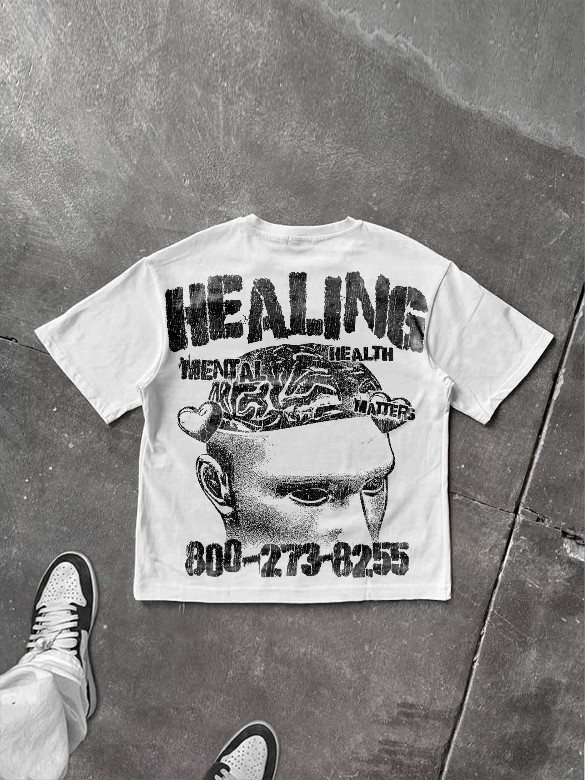 SPU: CP-226269-WJY Fabric: 100% Cotton Fabric Weight: 180g Pattern: Mental Health Matters Healing Process: Printed Gender: Women,Men Season: Summer Size Range: S-3XL Color: Black,Grey,White,Blue, Pink Print Position: Back