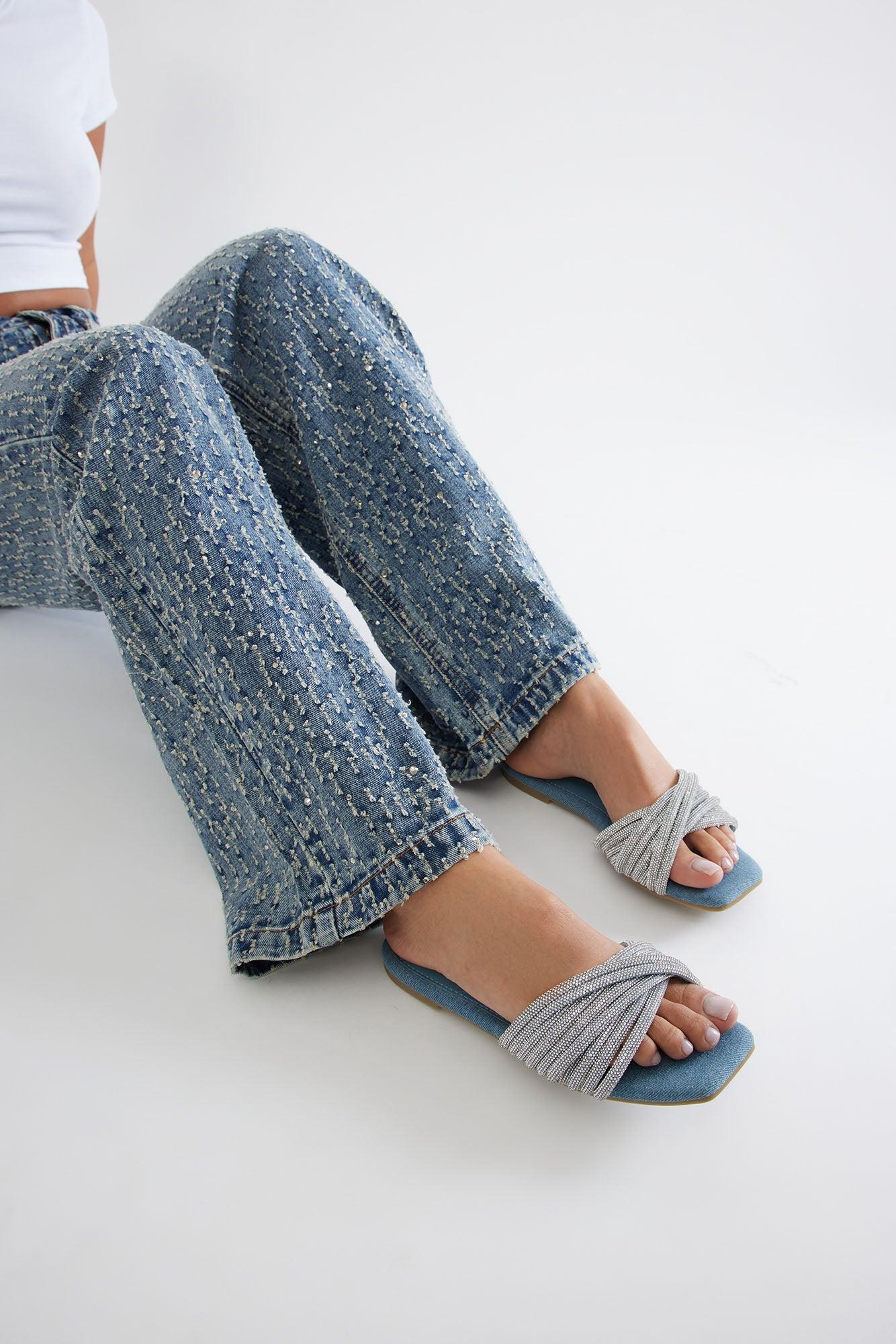 Mercer Rhinestone Sandals - Denim