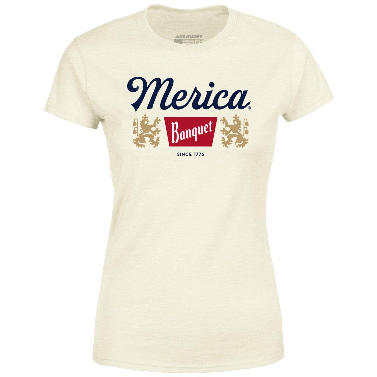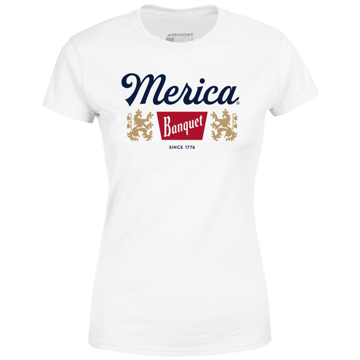A Merica themed design inspired by beer. Merica! Printed on our super soft 100% ringspun & combed cotton women's T-Shirt. Or upgrade to our Luxury 52/48 cotton/poly vintage heather edition for an even softer classic look. We print & ship all of our high quality graphic tees in the USA.