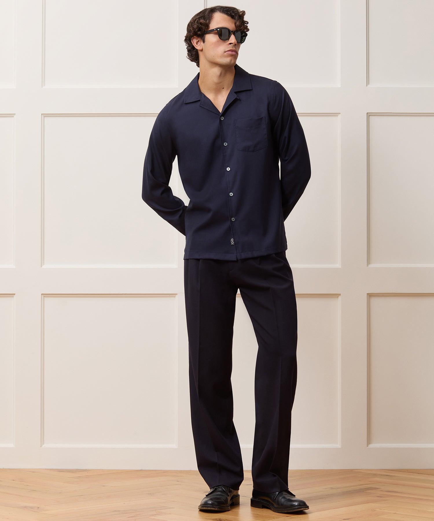 Our bestselling Hollywood Shirt takes all the laidback good looks of our Camp Collar Shirts and gives them a refined update in a long-sleeved silhouette. Versatile and easy-wearing, it’s crafted from pure Portuguese merino wool. It’s a perfect choice for shirting: merino is softer and more comfortable than most cotton, doesn’t wrinkle, is naturally odor-resistant, and is capable of regulating body temperature in both hot and cold weather. Wear it all on its own, open over a tee, or even underneath a suit jacket or sport coat to add a luxe pop to your looks. 100% Merino Wool Classic Fit Single Chest Pocket Wrinkle Free Natural Stretch Odor Resistant Fabric From Somelos in Portugal Made in Vietnam Machine wash warm. Do not tumble dry. Lay flat to dry. Warm iron if needed. Style SH1040589 Somelos is a family-owned operation renowned for its tailoring. Founded in Portugal in 1958, they’re committed to crafting fine woolen yarns and cotton fabrics.