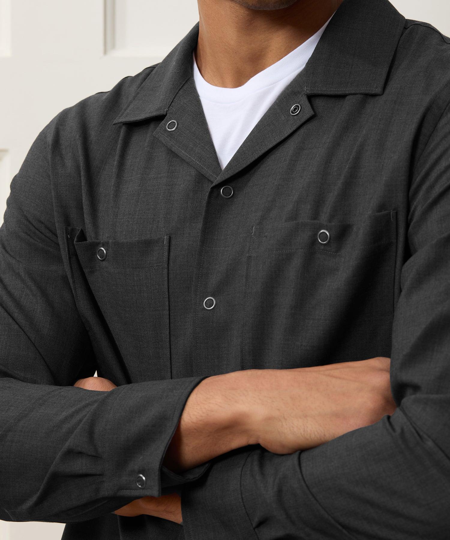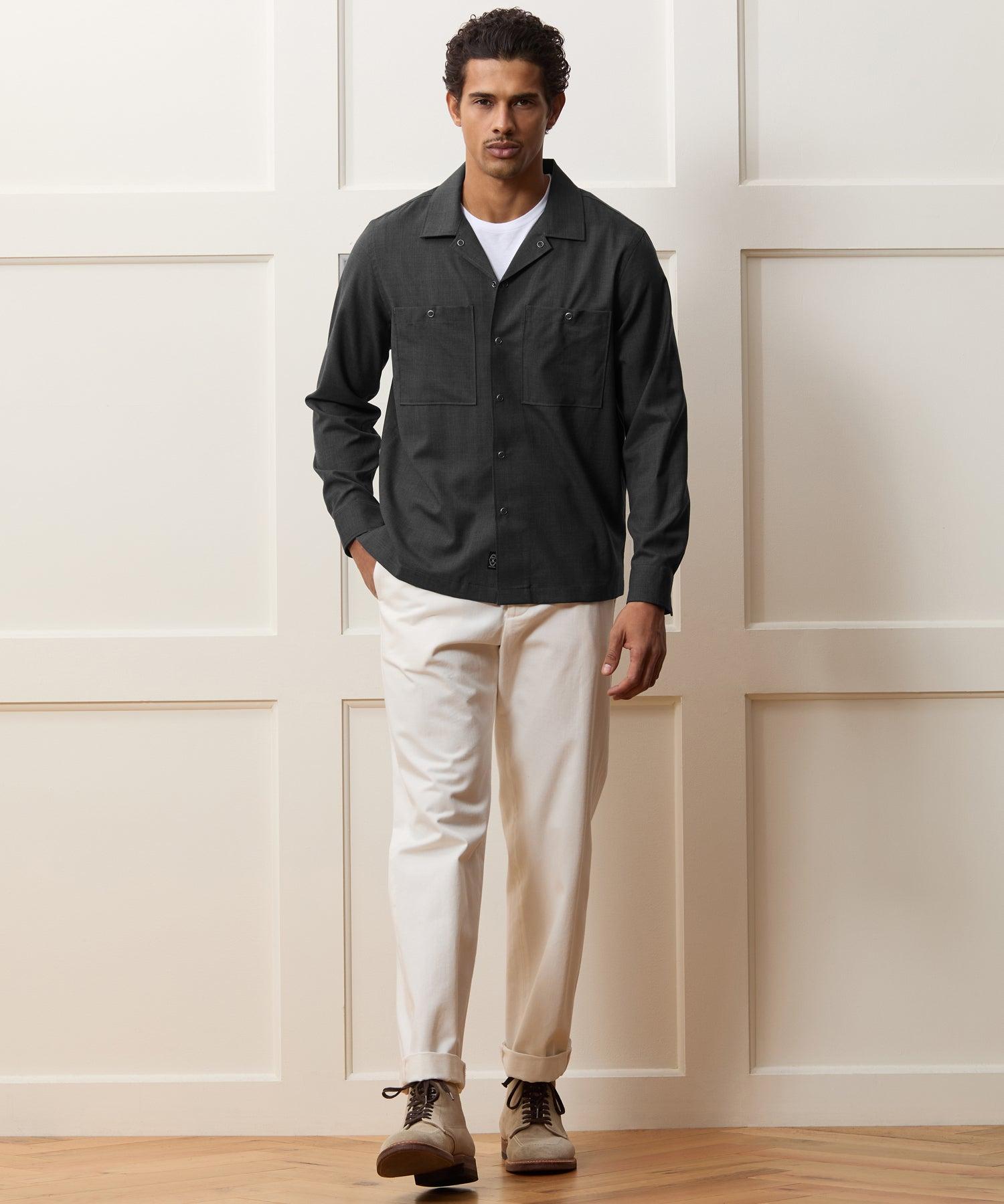 This rugged-meets-refined Mechanic Shirt is crafted from a fine, lightweight merino wool fabric. It’s a perfect choice for shirting: woven merino is softer and more comfortable than most cotton fabrics, doesn’t wrinkle, is naturally odor-resistant, and is capable of regulating body temperature in both hot and cold weather. Design details include two chest pockets, a straight hem and ring snaps. 100% Wool Slim Fit Model is 6'2" and is wearing a size Medium Ring Snaps at Placket, Pockets and Cuffs Locker Loop at Back Chest Pockets Straight Hem Imported Dry Clean Only Style SH27110611