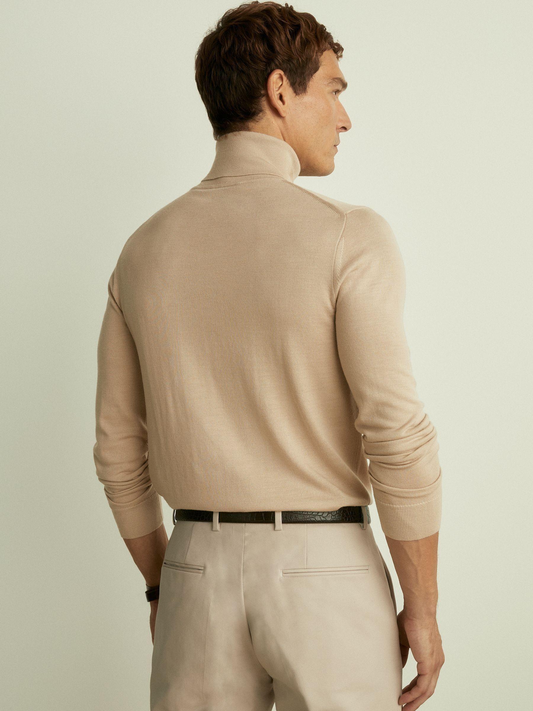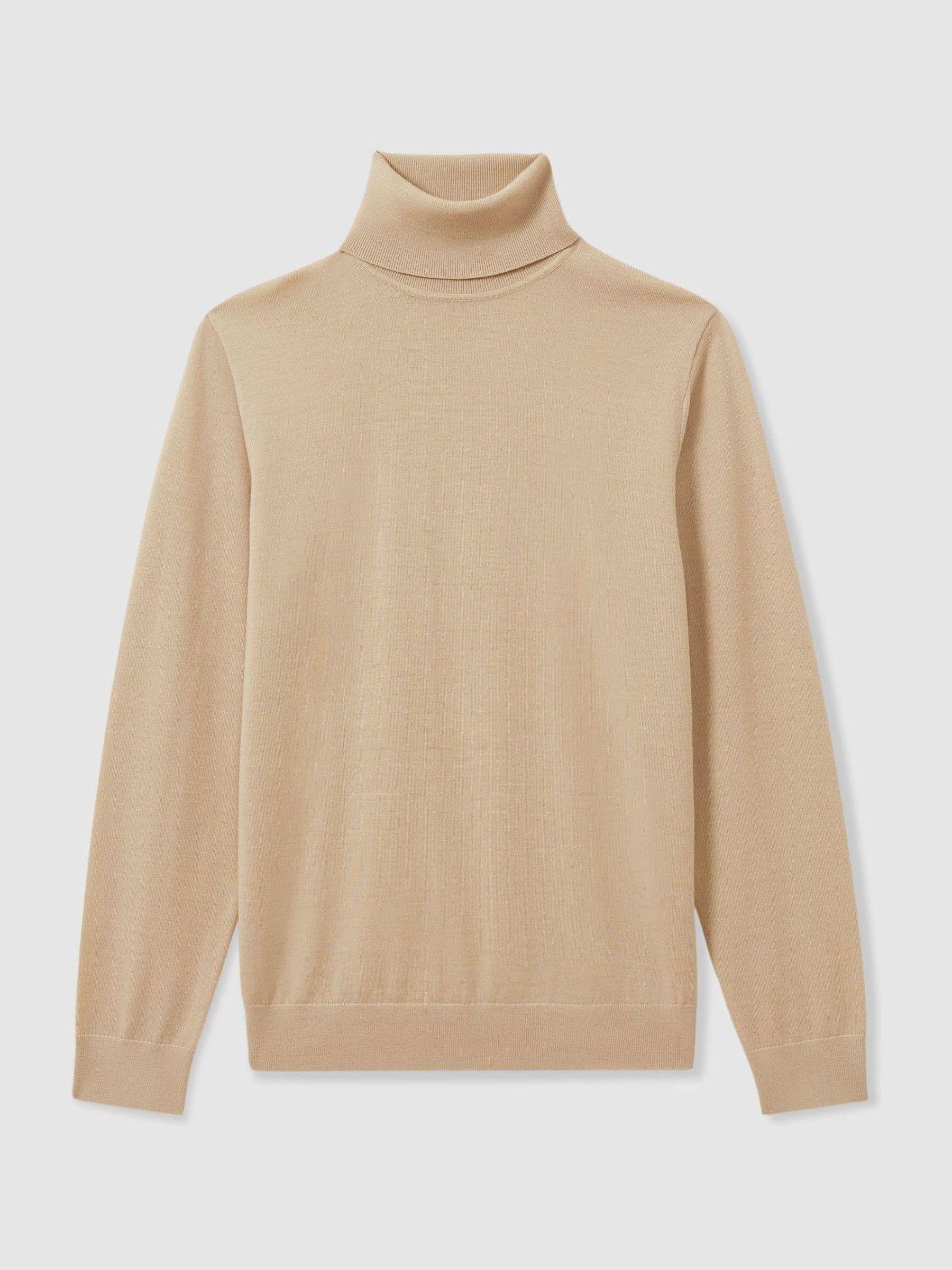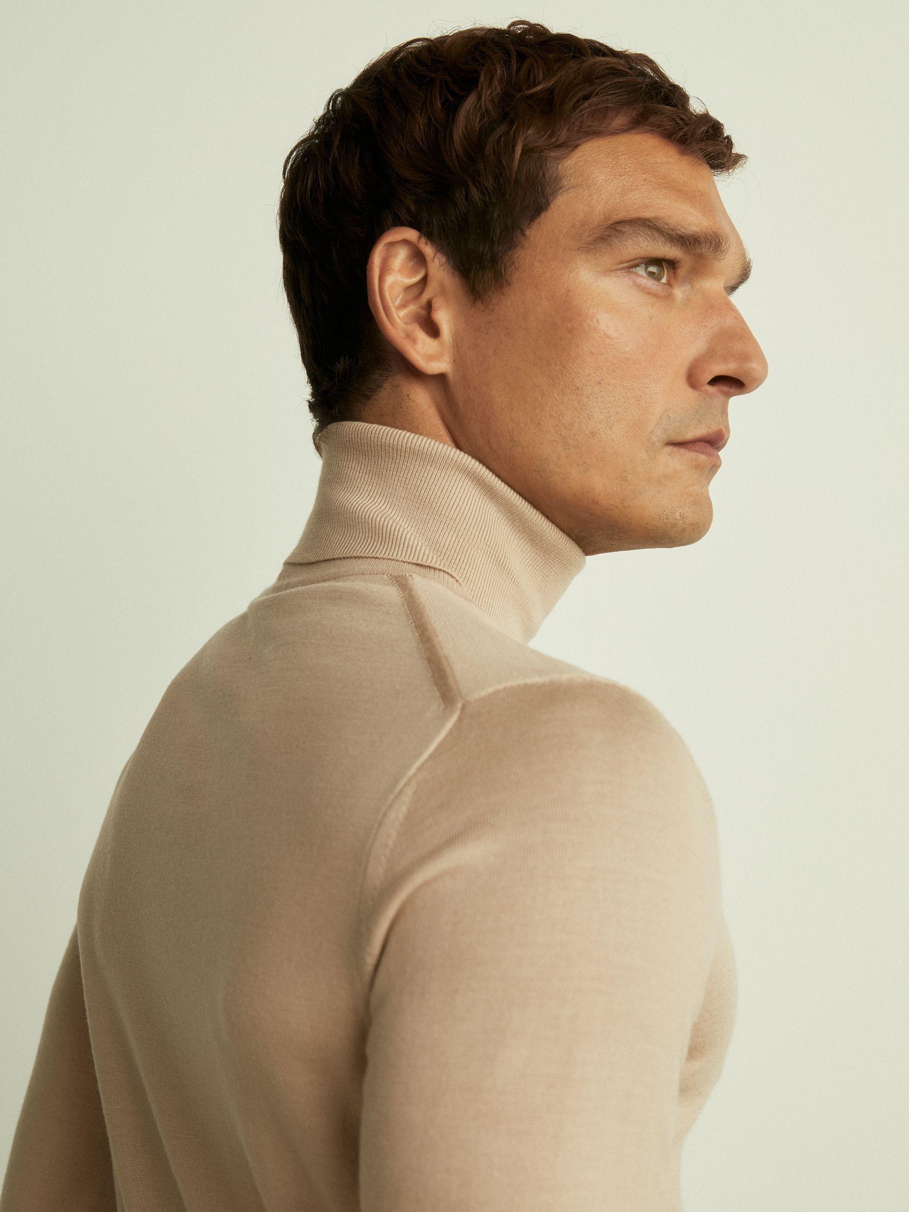 The natural breathability and softness of merino makes the Caine jumper so comfortable to wear. Knitted with a fine gauge for a smooth finish, it’s ribbed to a close fit at the roll neck, cuffs and hem. 100% merino. Ribbed roll neck, cuffs and hem. Measurements of model: 6ft2 / 187cm. The model is wearing a size M.