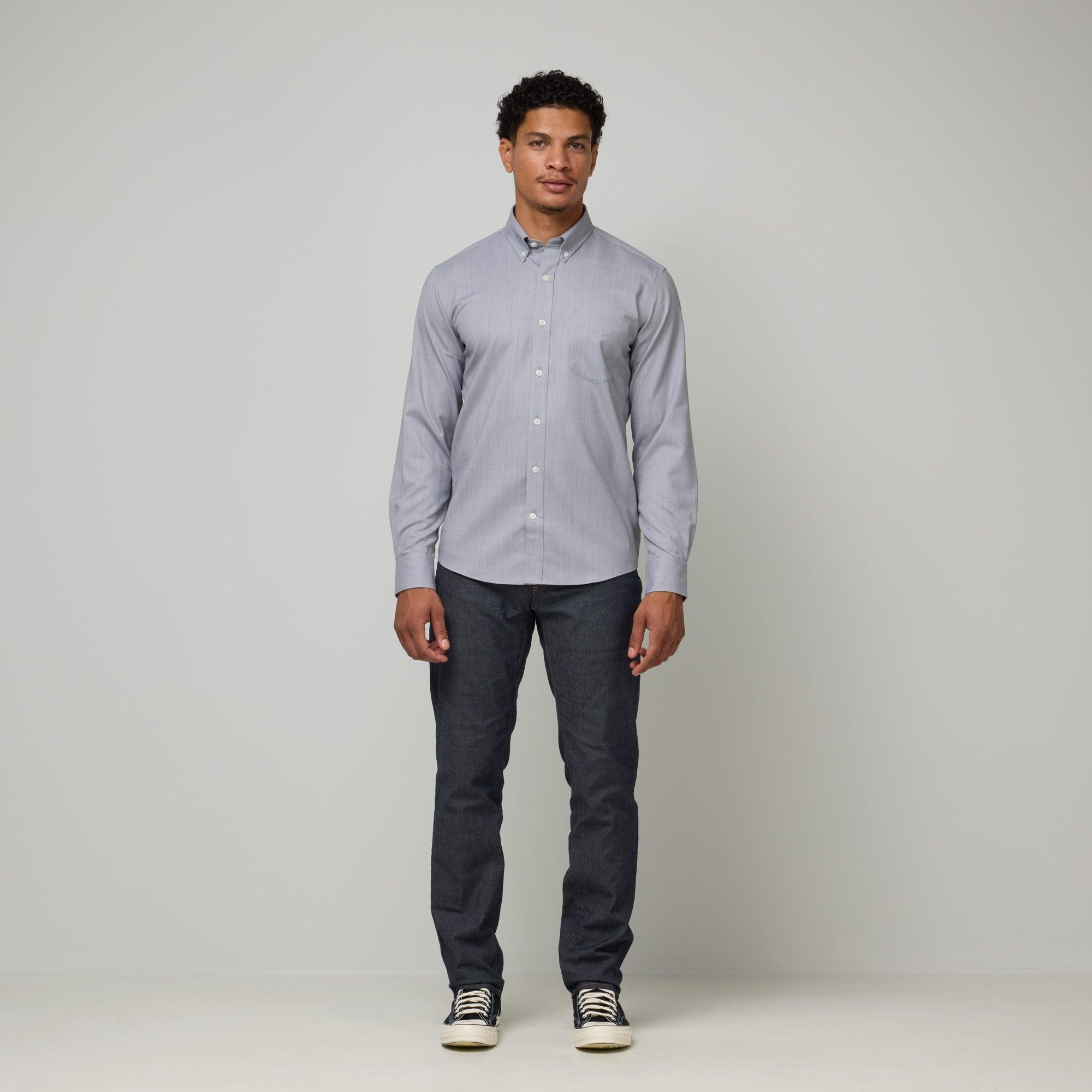 Merino Wool Button-Down Shirt | Light Gray Oxford