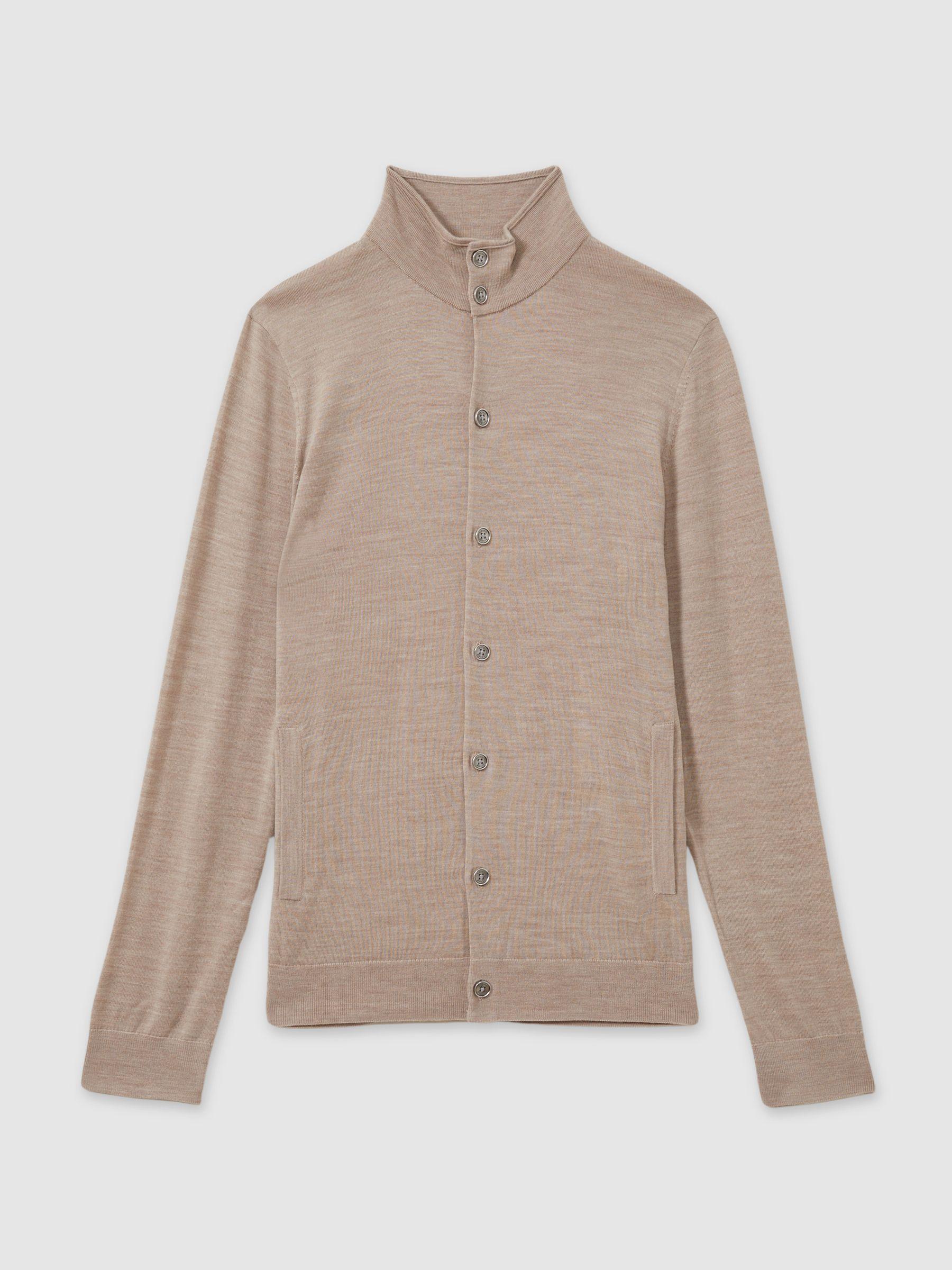 The Harlow cardigan is spun from 100% merino wool for softness and movement and it fastens with a button-front closure through to the funnel neckline. Pockets are added for functionality. Merino wool. Funnel neckline. Button-front closure. Long sleeves. Side-slip pockets. The model is wearing a size M. Measurements of model: Height 6ft 2.5'' / 189cm.