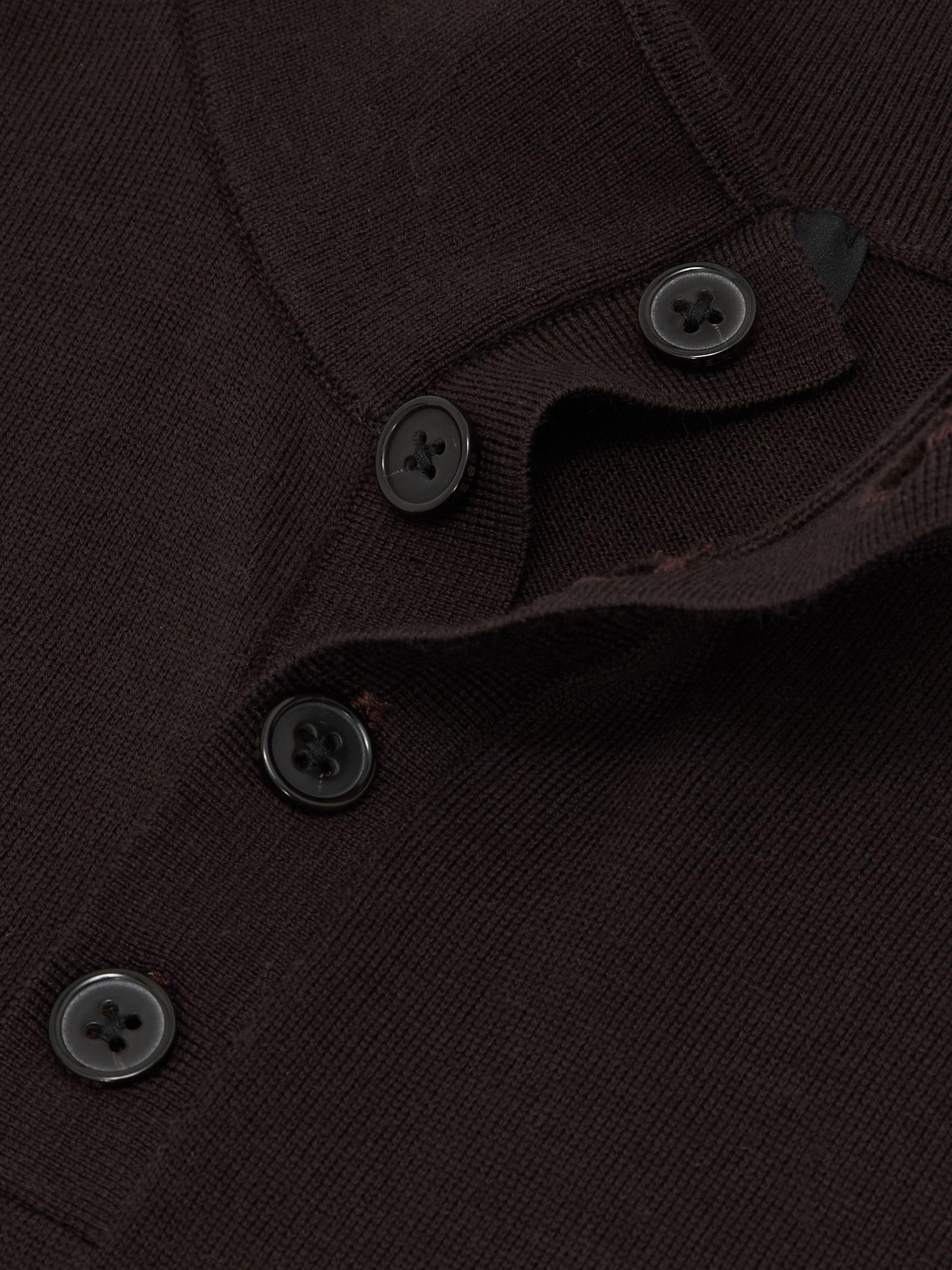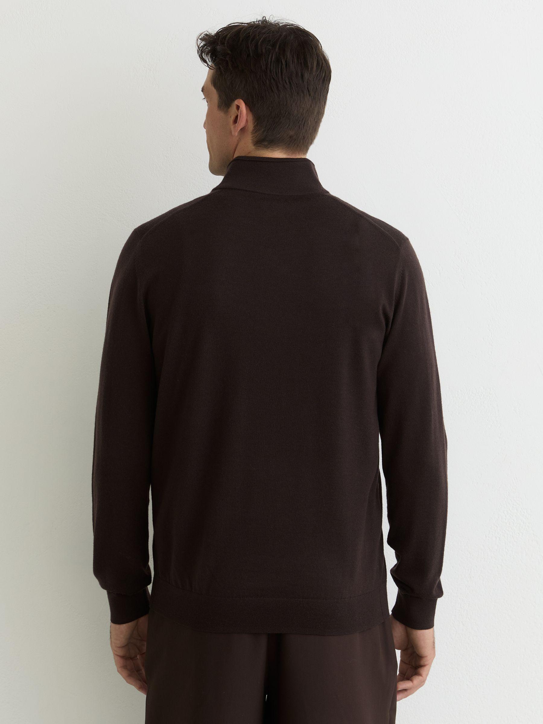 Merino Wool Half-Button Funnel Jumper in Chocolate Brown
