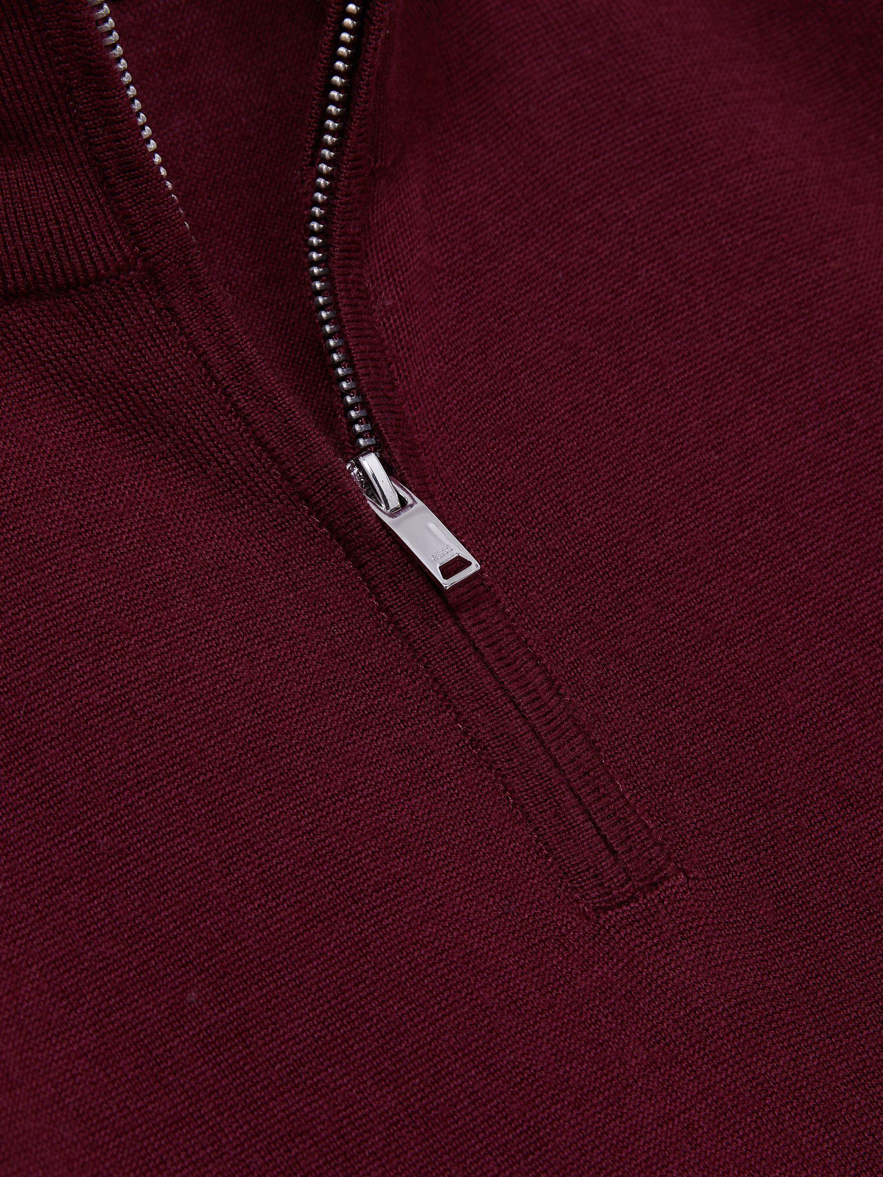 Merino Wool Half-Zip Funnel Neck Jumper in Claret Red