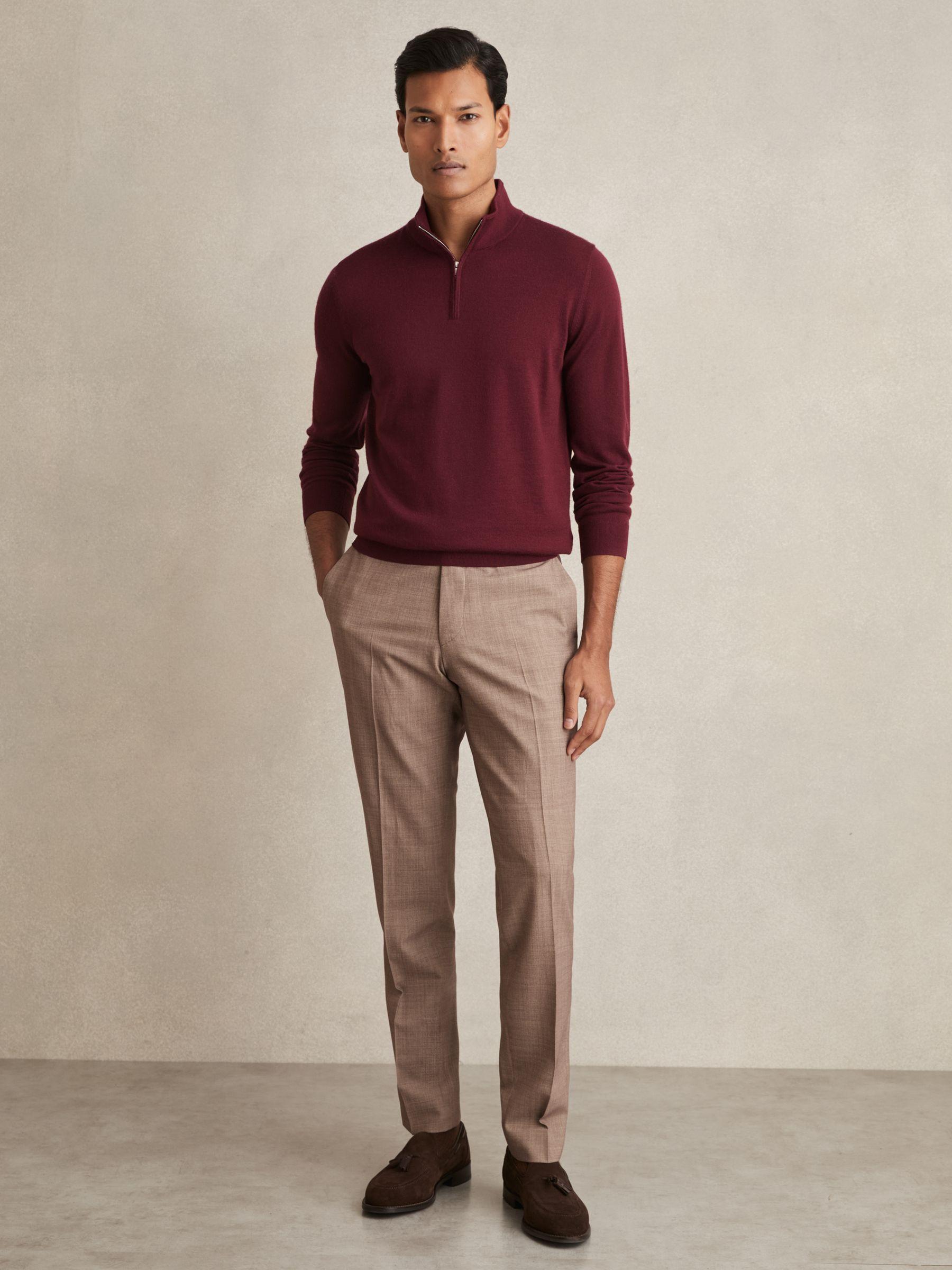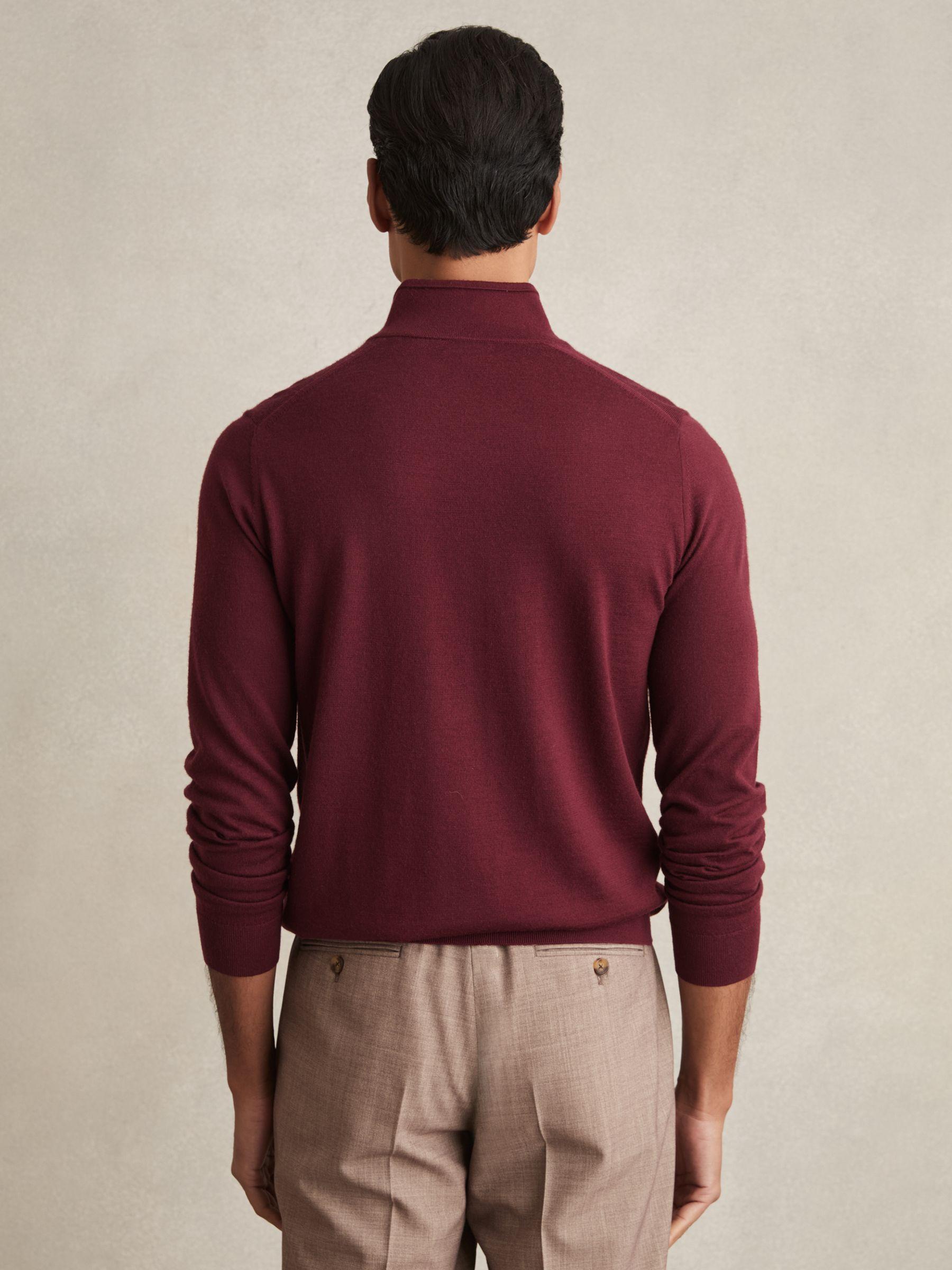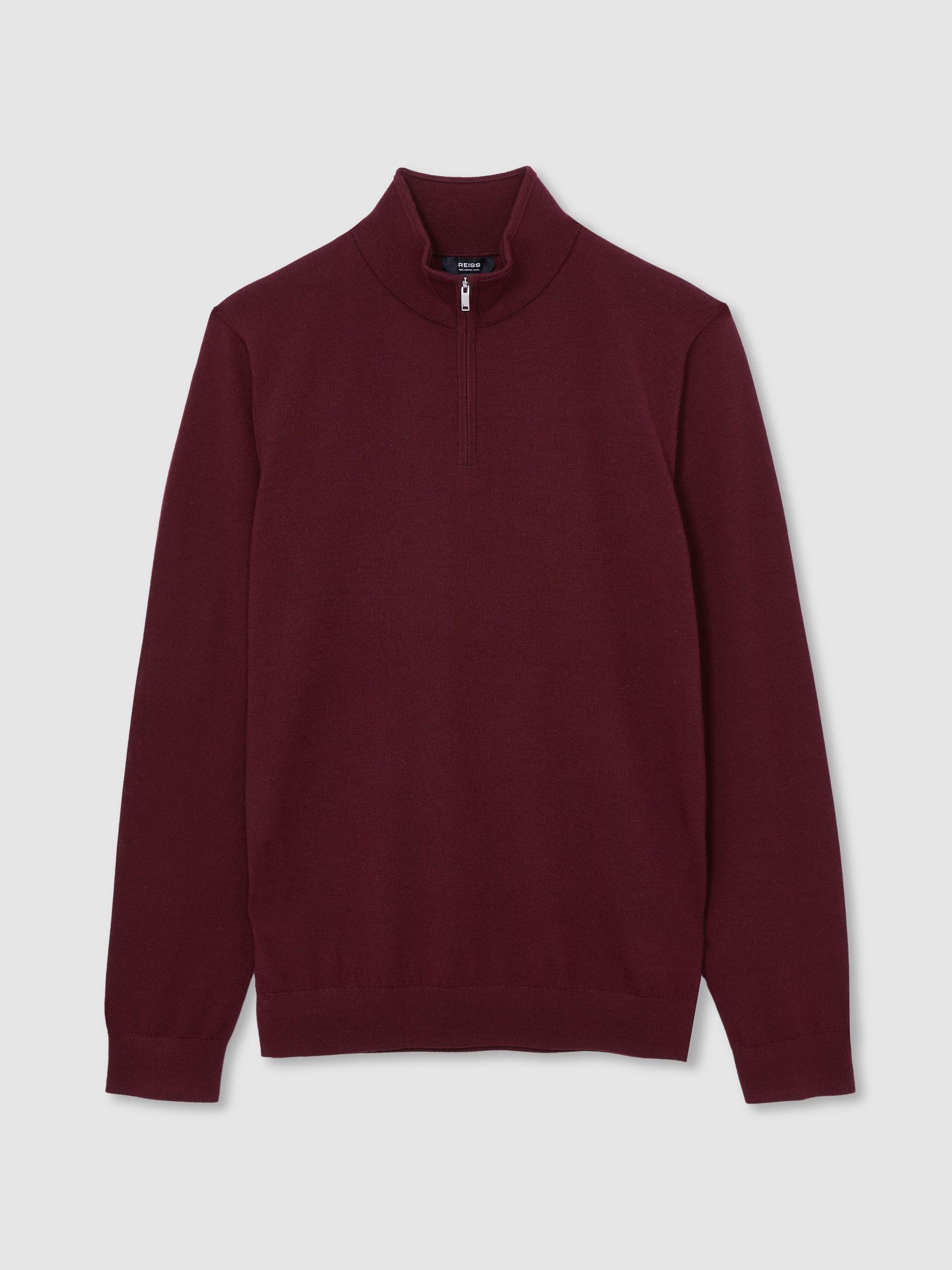 Shop for Reiss Merino Wool Half-Zip Funnel Neck Jumper in Claret Red online at REISS USA