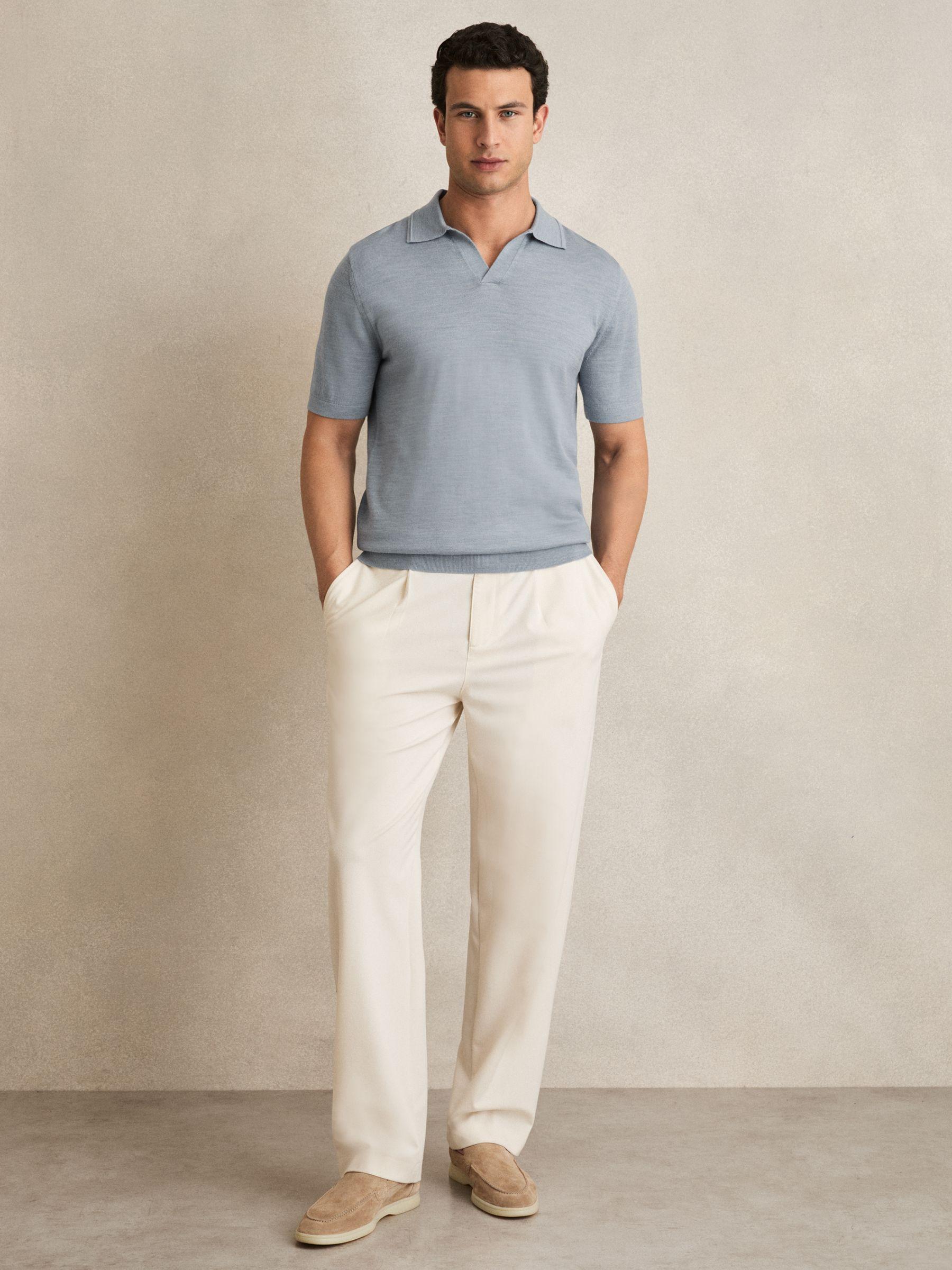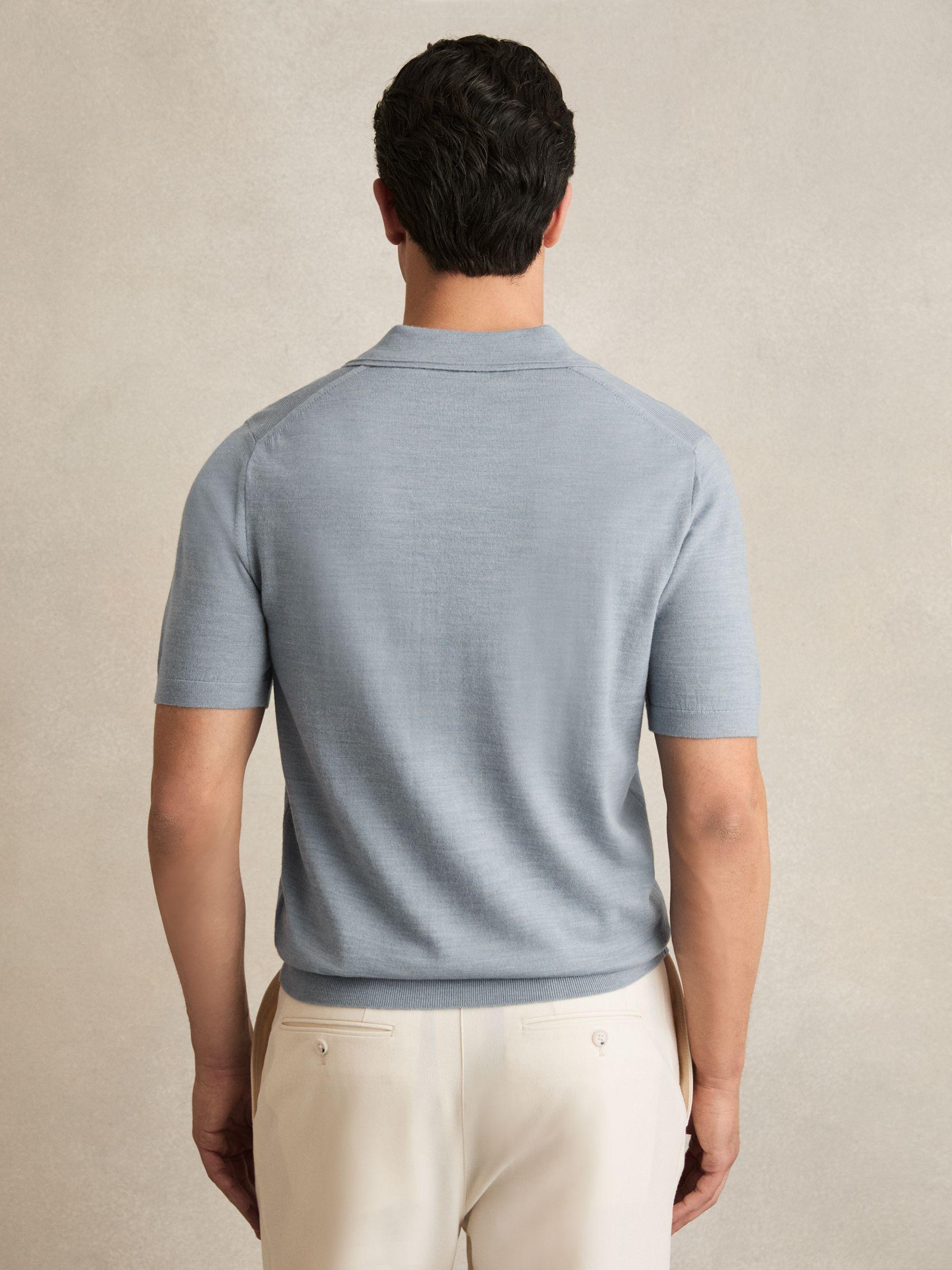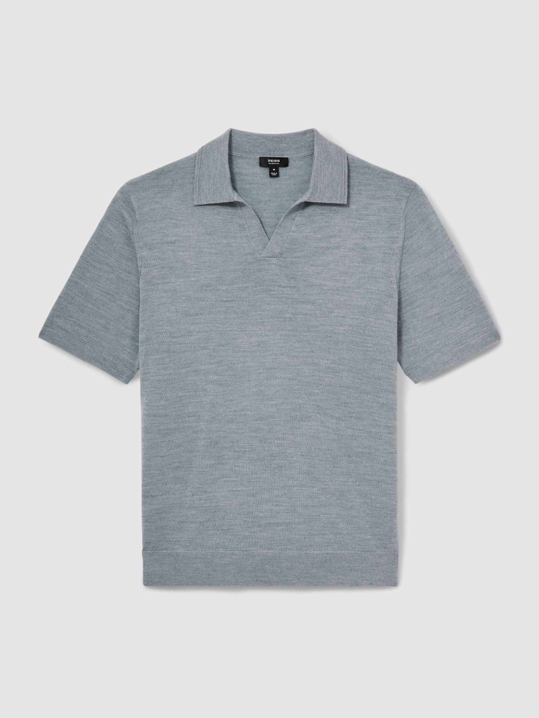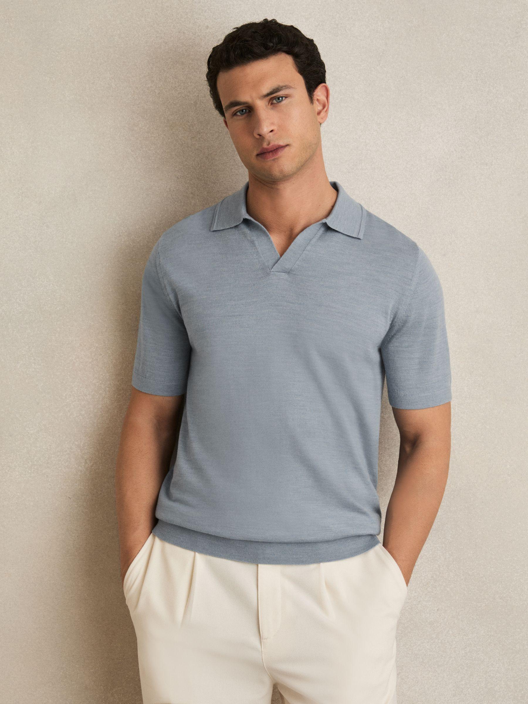 Shop for Reiss Merino Wool Open Collar Polo Shirt in Soft Blue Melange online at REISS USA
