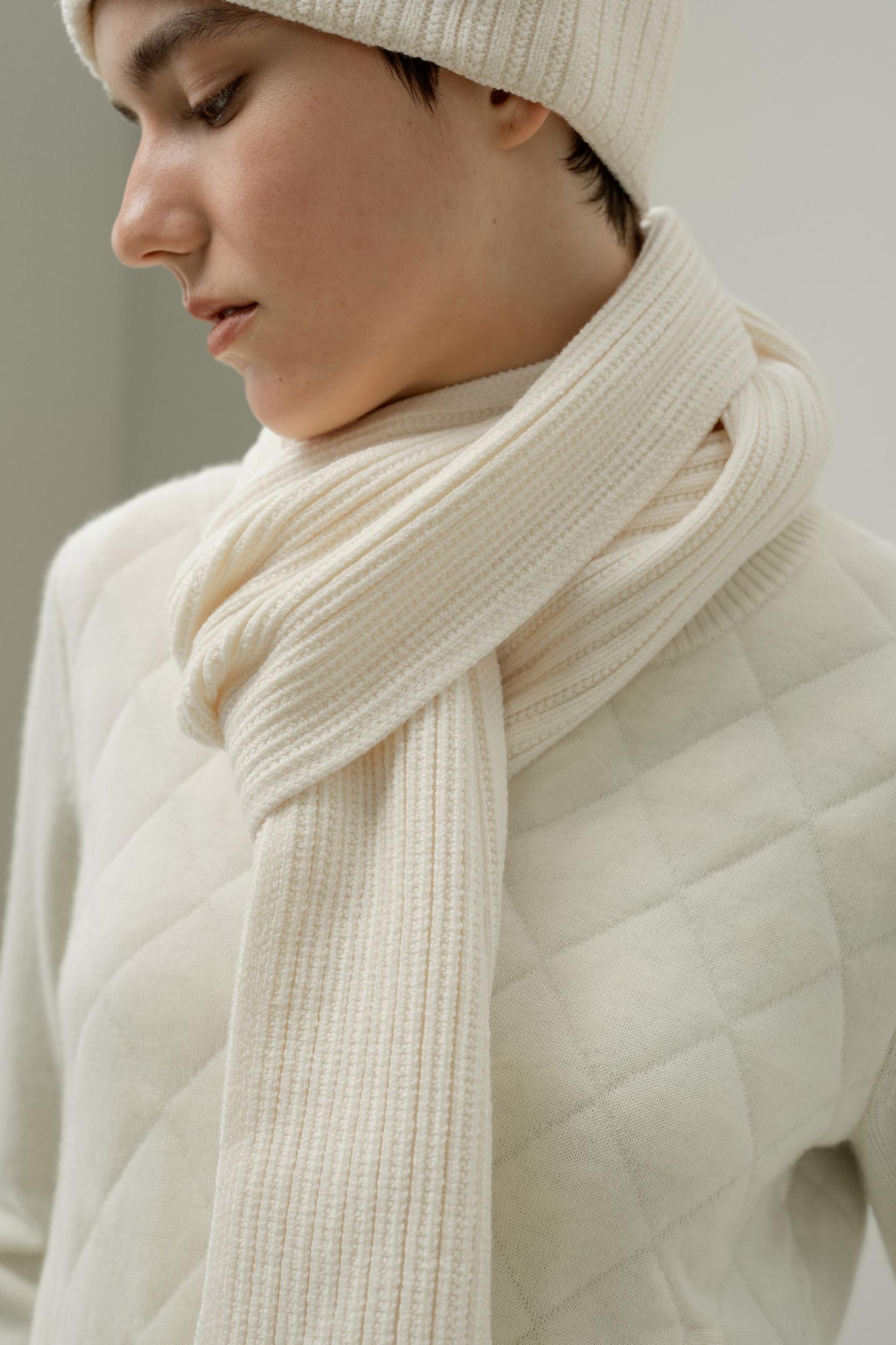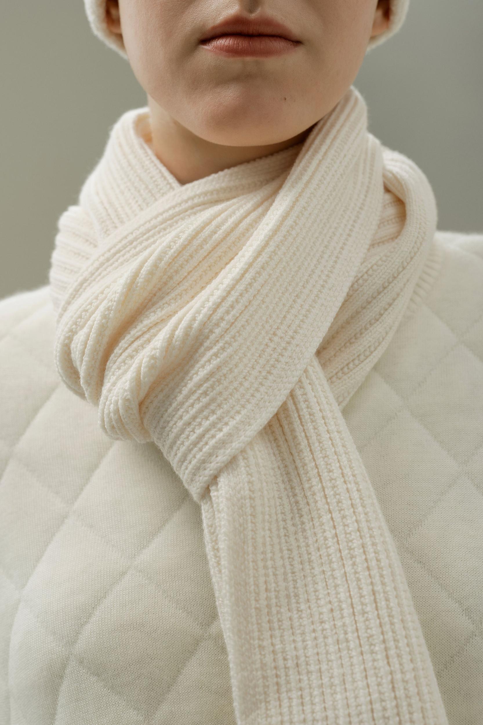 Discover our artisanal merino wool scarf with ribbed and knotted texture. Machine-washable for easy care, lightweight warmth without bulk. Itch-free comfort for everyday elegance in any season.